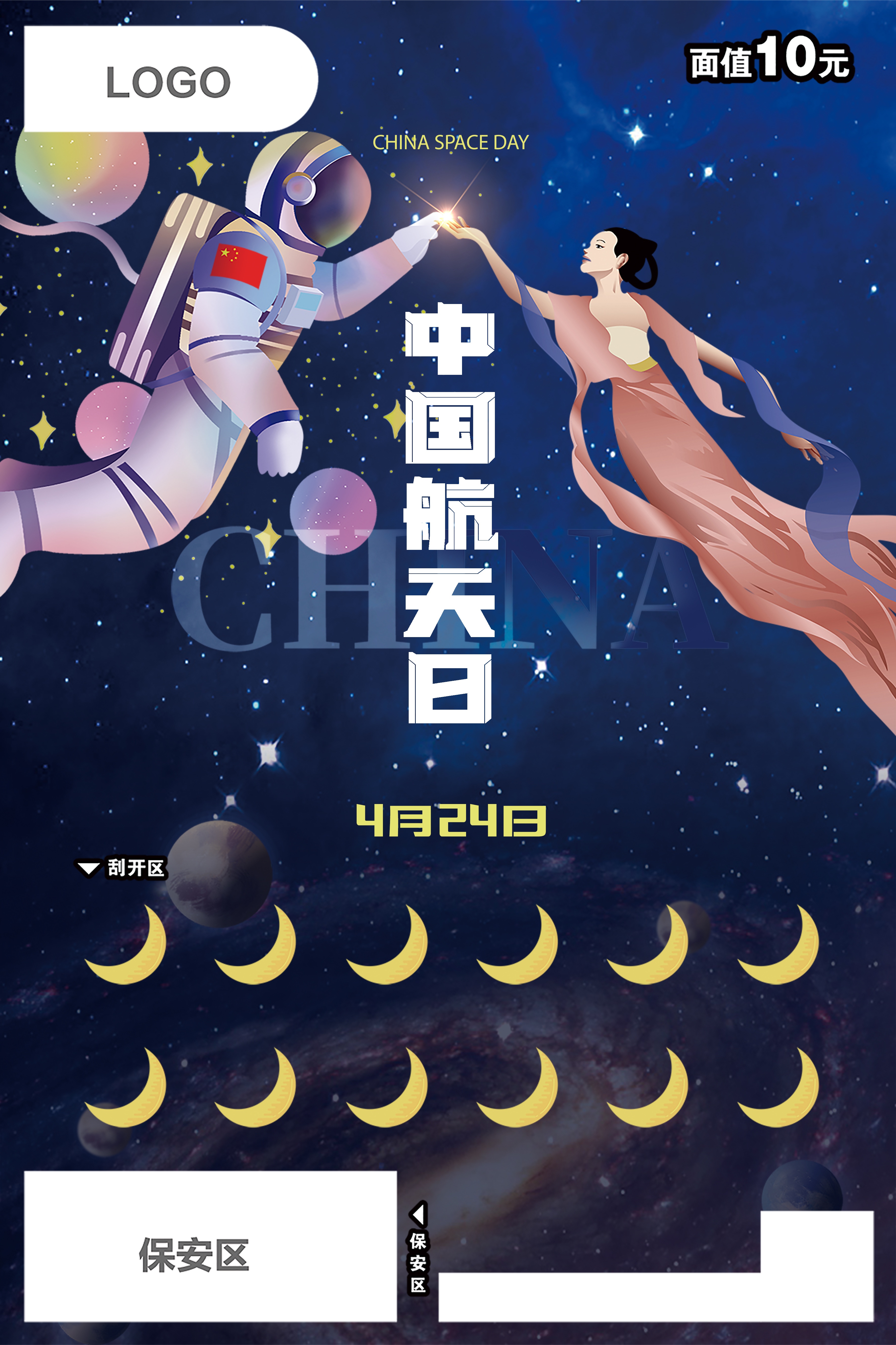 1、作品类别:平面设计 2、创意阐述:画面中,中国宇航员与嫦娥之牵跨越千年。古老的民间传说寄托着古代中国人对月球的向往,在中国航天事业的发展步伐中成为了现实。中国探月工程,又称“嫦娥工程”,是利用航天器对月球进行各种探测的系统性航天工程,是中国航天的卓越一步。2016年3月8日,国务院批复同意将每年4月24日设立为“中国航天日”,这是为了纪念中国航天事业成就,发扬中国航天精神而计划设立的一个纪念日。此则票面设计正是想要为宣传中国航天日助一份力,传承航天精神,激发全民尤其是青少年崇尚科学、探索未知、敢于创新的热情。