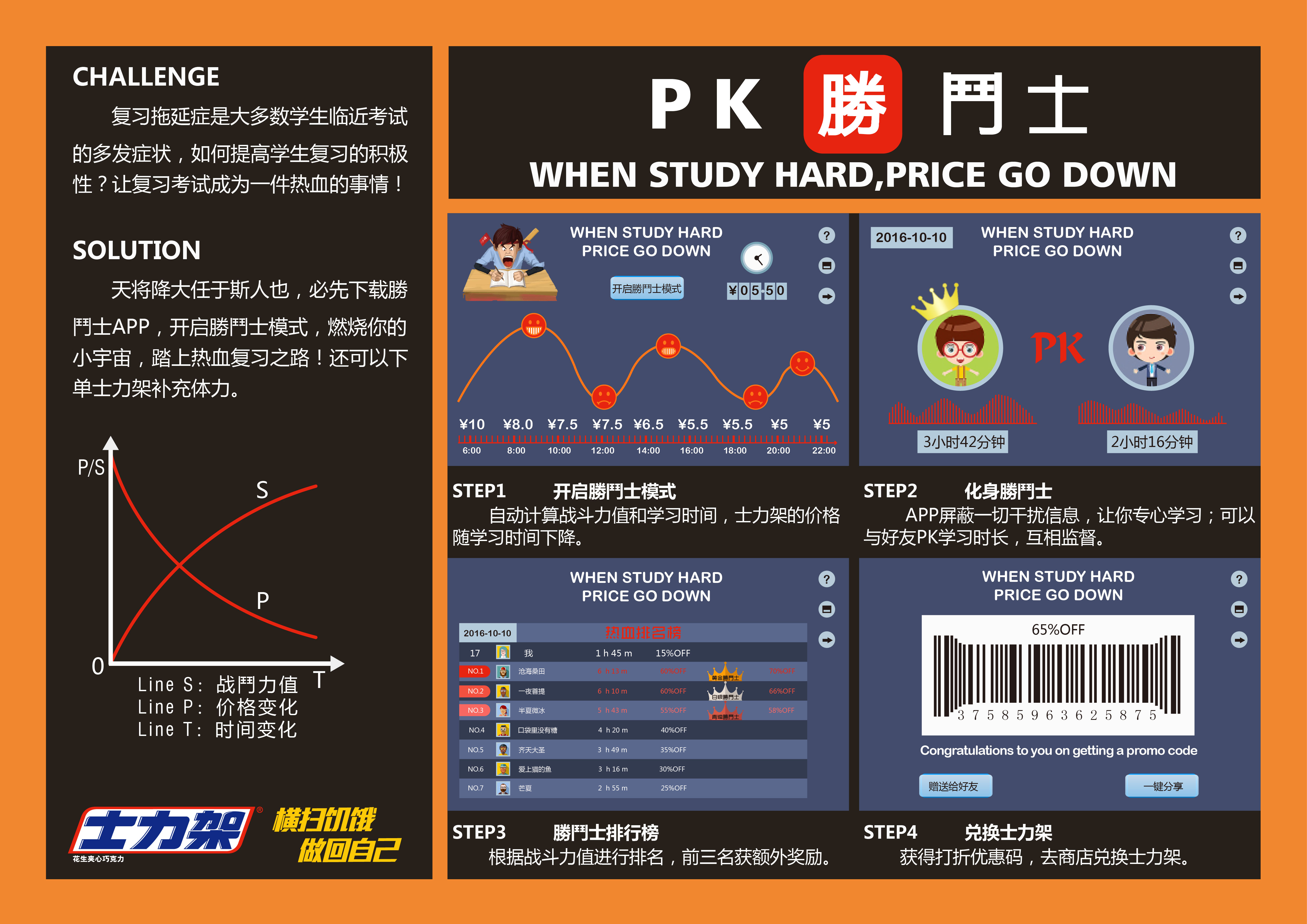 勝鬥士 370 2831 0 设计 分享 PK勝鬥士 CHALLENGE 复习拖延症是学生临近考试的多发症状,如何提高学生复习的积极性?让复习备考成为一件热血的事情! SOLUTION 天将降大任于斯人也,必先下载勝鬥士APP,开启勝鬥士模式,燃烧你的小宇宙,踏上热血的复习之路!还可以下单士力架补充体力。 赞一下 咬你啊! ‹ › 发布