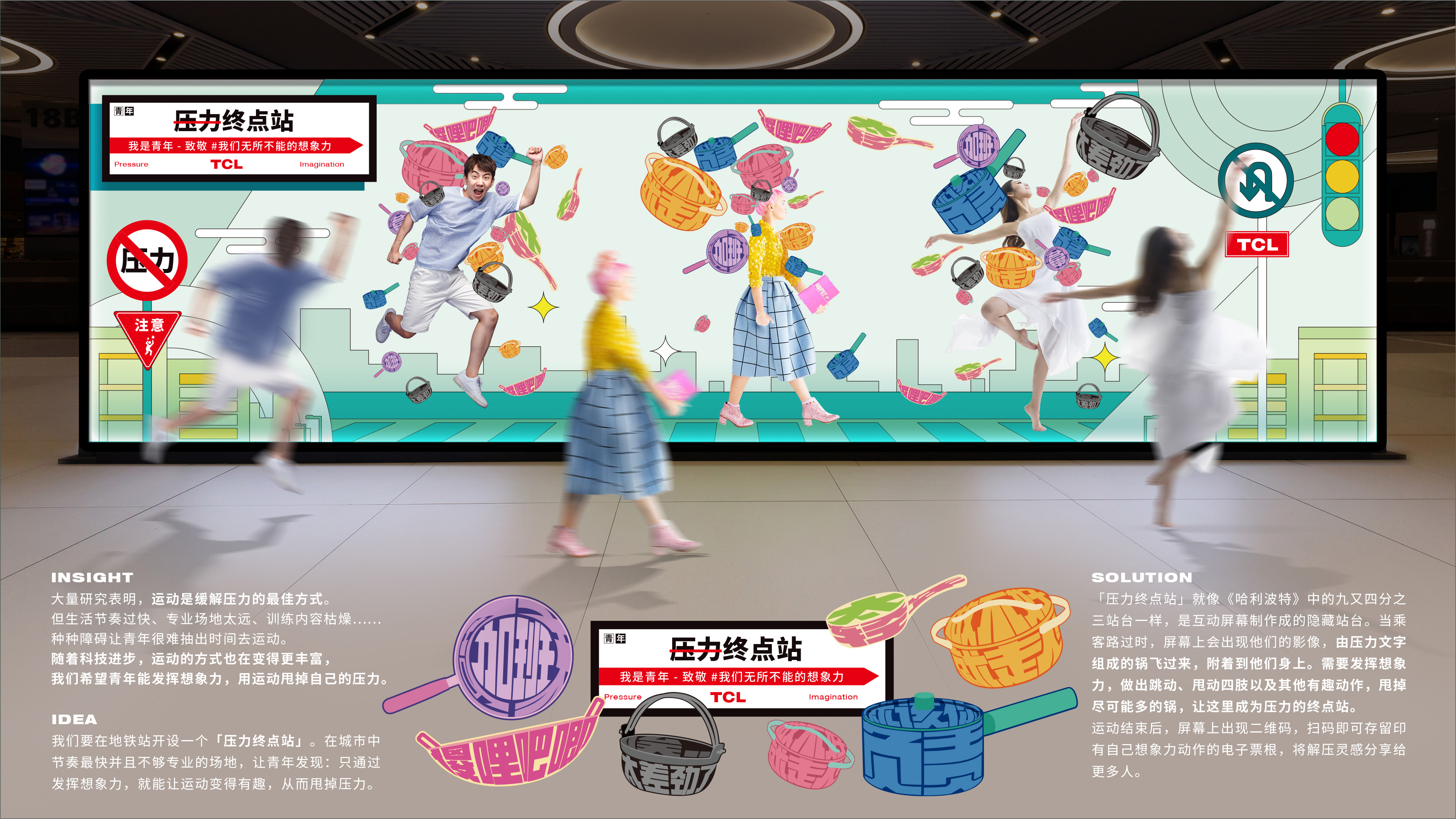 压力终点站 0 1 0 互动装置、科技、运动、青年压力、锅 分享 大量研究表明,运动是缓解压力的最佳方式。随着科技进步,运动的方式也在变得更丰富,我们希望青年能发挥想象力,用运动甩掉自己的压力。在地铁站开设一个「压力终点站」,运用城市中节奏最快并且不够专业的场地,让青年发现:只通过发挥想象力,就能让运动变得有趣,从而甩掉压力。联动线上线下平台,为青年的想象力,提供更广阔的空间。 赞一下 ‹ › 发布