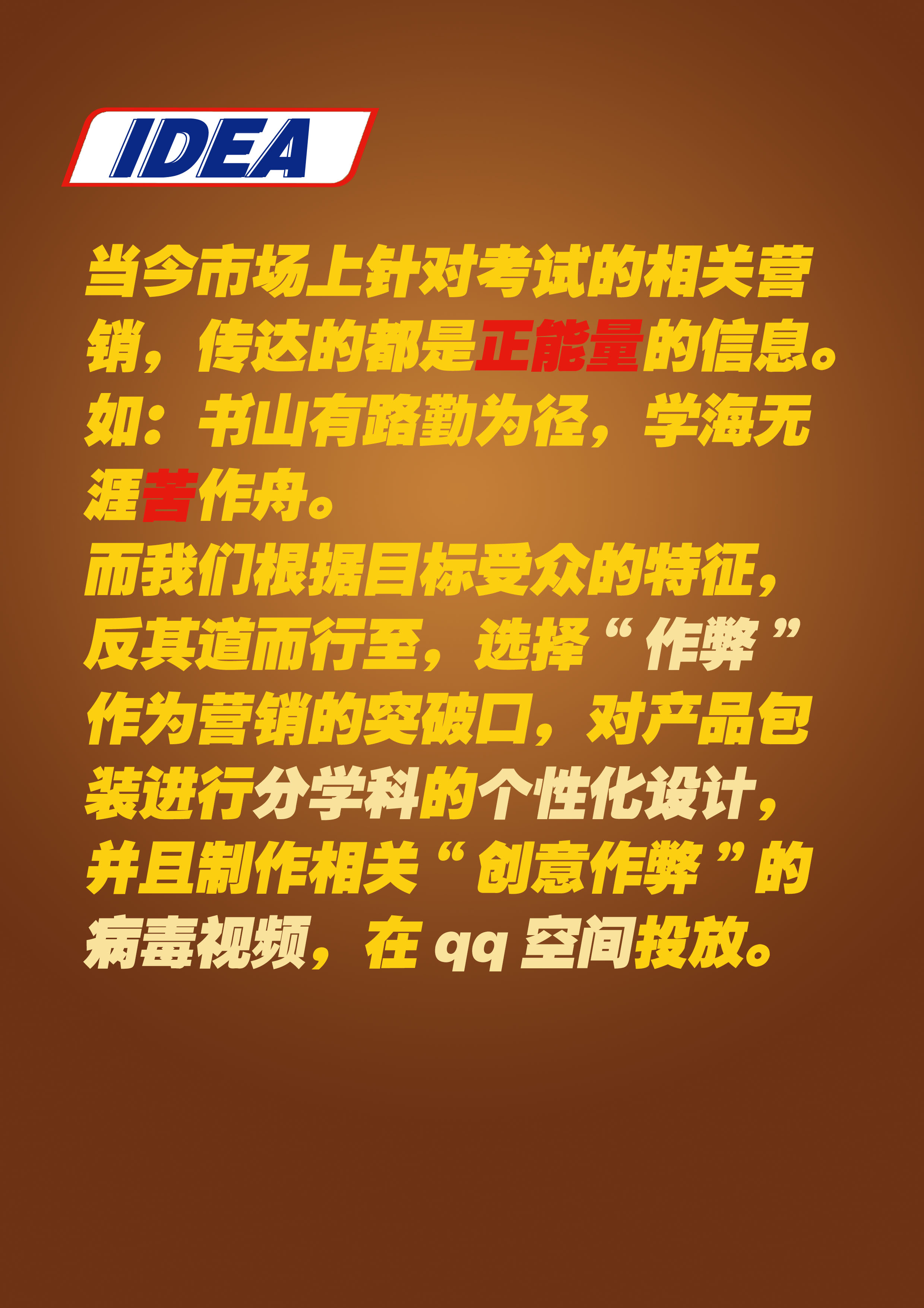 根据学生团体以及考试的主题,我们一反正能量的常规套路,选择“作弊”作为营销的曝光点。