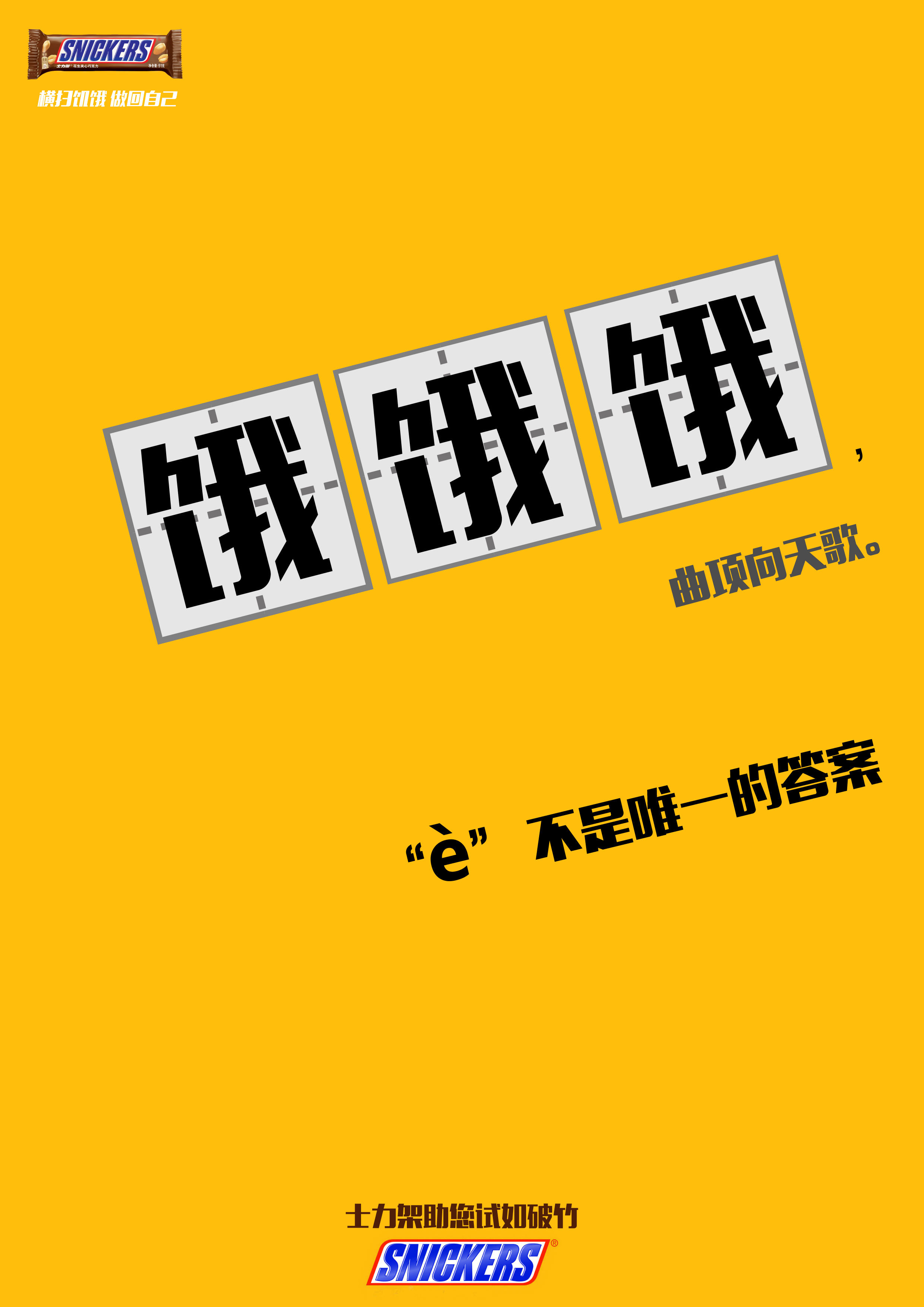 “è”不是唯一的答案 916 3026 0 平面 分享 考生们在考场上因为缺乏能量,出现做错题的情况经常出现,现在,士力架想告诉你,2不是唯一的答案。 考生们在考场上因为缺乏能量,出现做错题的情况经常出现,现在,士力架想告诉你,饿不是唯一的答案。 考生们在考场上因为缺乏能量,出现做错题的情况经常出现,现在,士力架想告诉你,Er不是唯一的答案。 赞一下 NANA 珠海市 关注 查看更多信息 ‹ › 发布