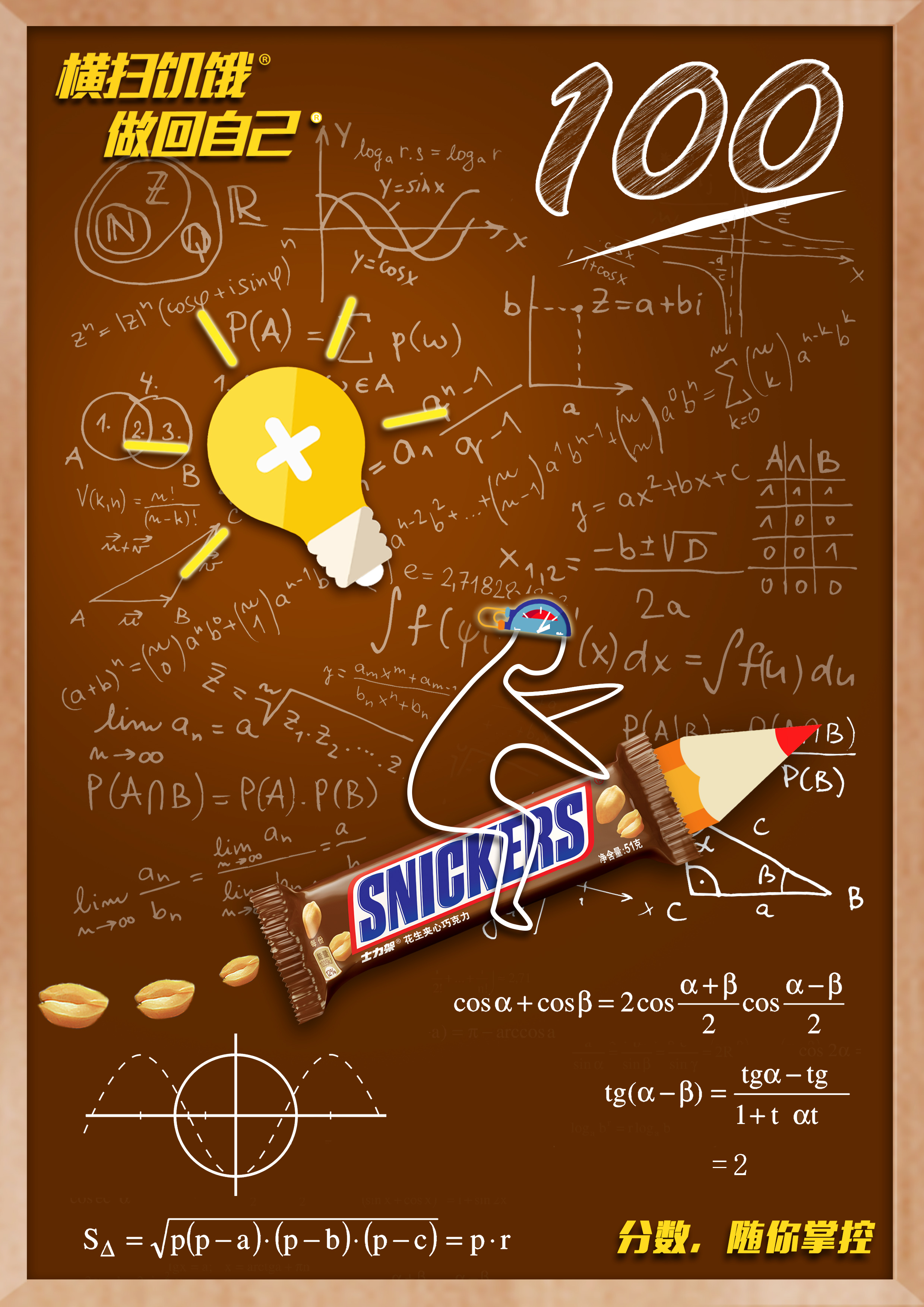 考场上变成饿货怎么办?!头脑一片浆糊什么都想不到,知识变得模糊又乱糟糟......士力架动力火箭让你重拾条理,做回你自己!犀利到上天,拥有批卷老师一样的爆发力,随意掌控分数! You'll get confused and your brain is blank when you're starving. Snickers——the energy rocket, help make your thoughts coherent. You can control your scores as well as teacher.