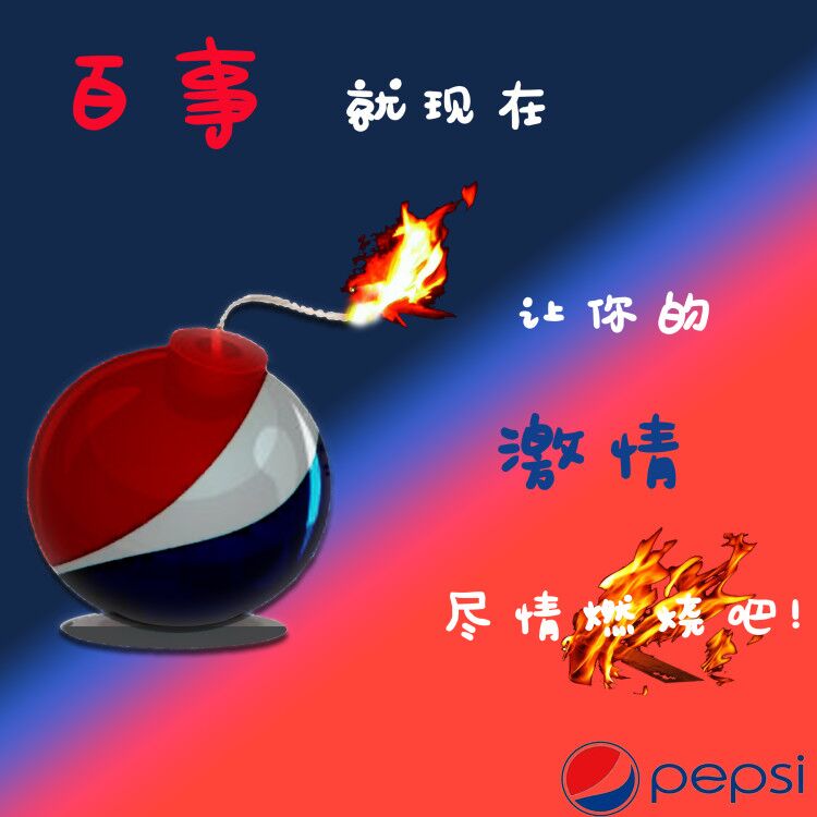 内心的狂热不只一点点 1038 3034 0 平面设计 分享 这幅作品由百事的蓝白红三种颜色构成主背景,营造一种热烈刺激的氛围,这幅作品的左边是一个印着百事logo正在燃烧的炸弹,表达出百事可乐给受众带来酷爽的刺激,围绕百事可乐“百事,就现在”的主题,让受众释放内心的理想,让激情尽情燃烧! 赞一下 C&I(创想) ‹ › 发布