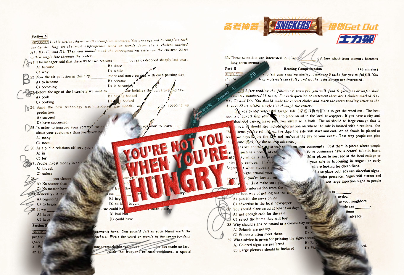 到你感到饥饿时,是否心情烦躁很抓狂?你会、猫也会。 本稿表现出当你饥饿时你可能会像猫一样烦躁、出错、静不下心,导致无法发挥正常考试水平。 所以记得要吃备考神器 饿货Get Out——士力架