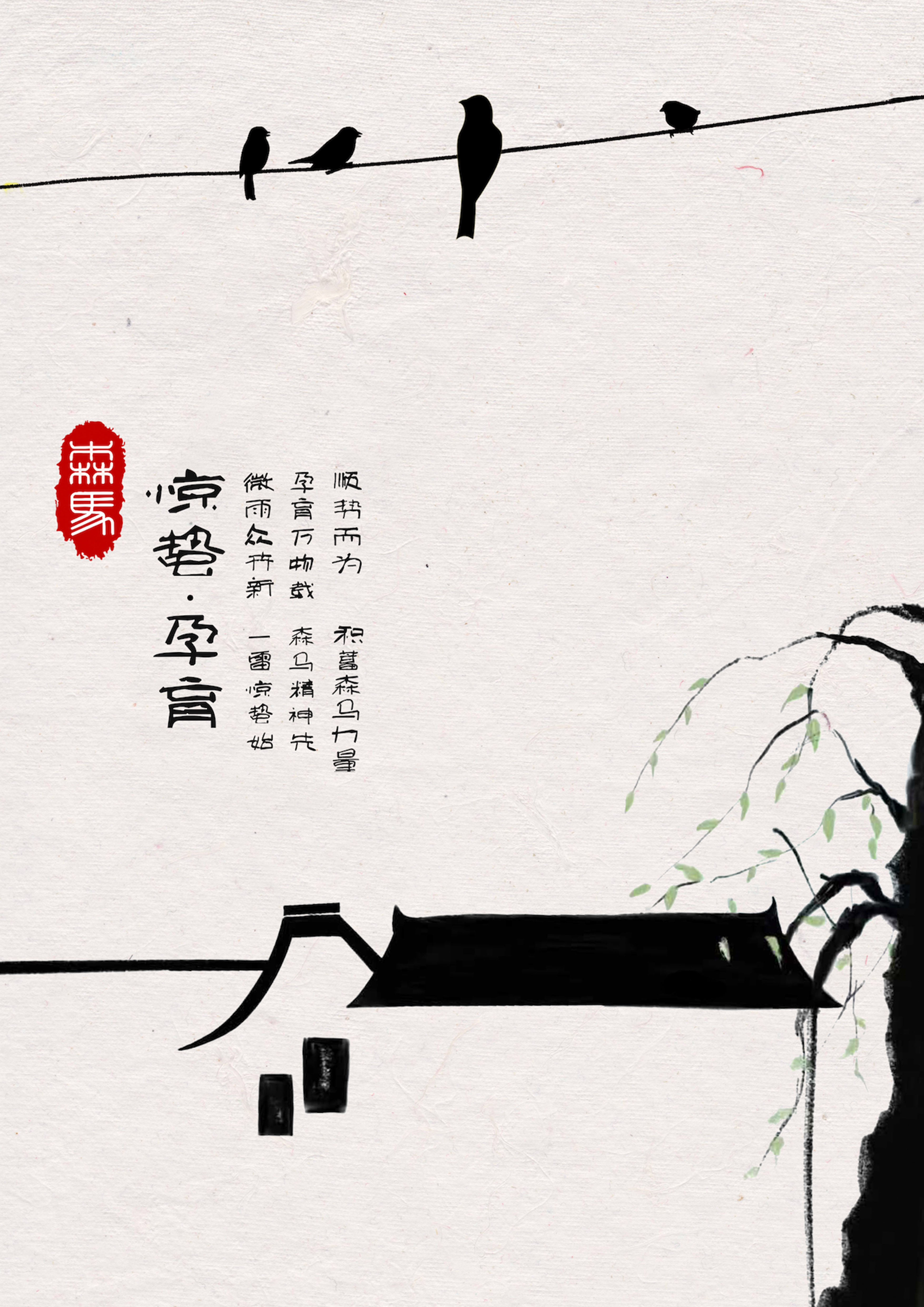 t恤设计(惊蛰):黑色水墨代表的是二十四节气地球运转的轨迹,藕荷色墨点代表的是惊蛰时节地球的位置。