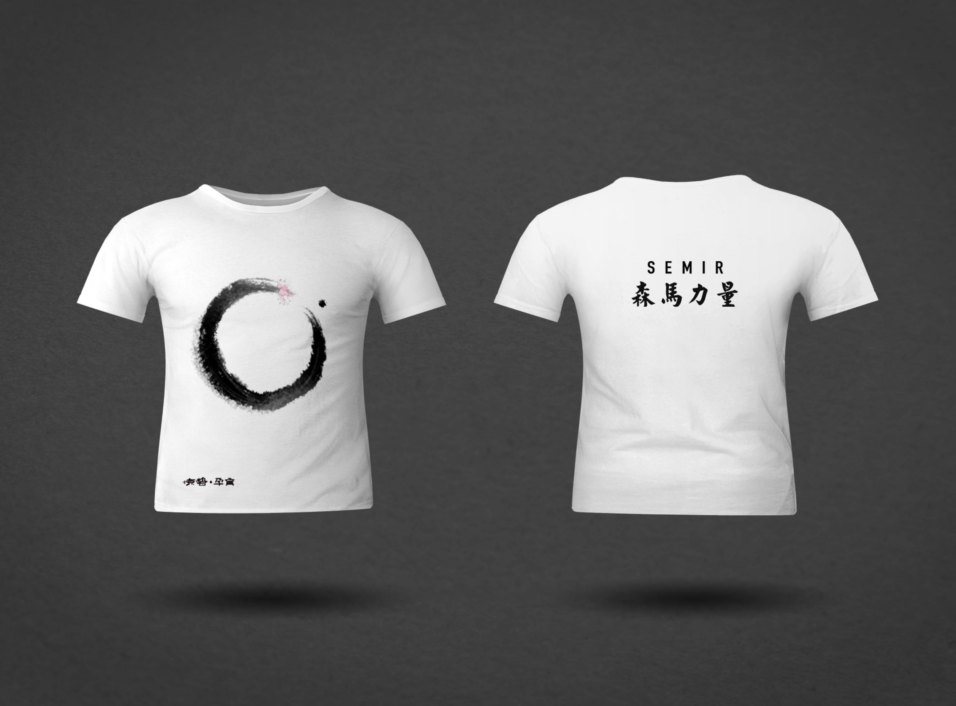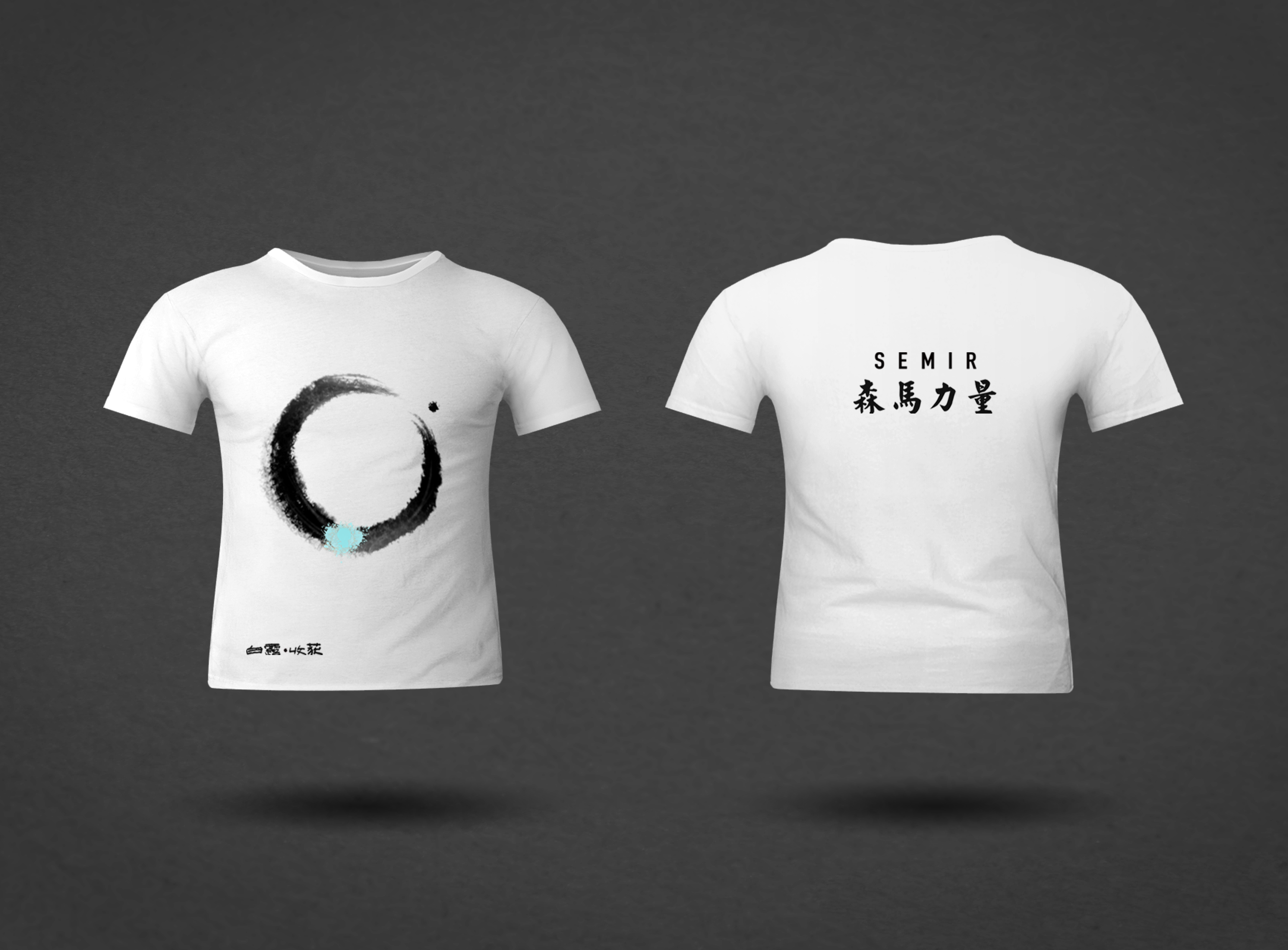 t恤设计(白露):黑色水墨代表的是二十四节气地球运转的轨迹,月白色墨点代表的是白露时节地球的位置。