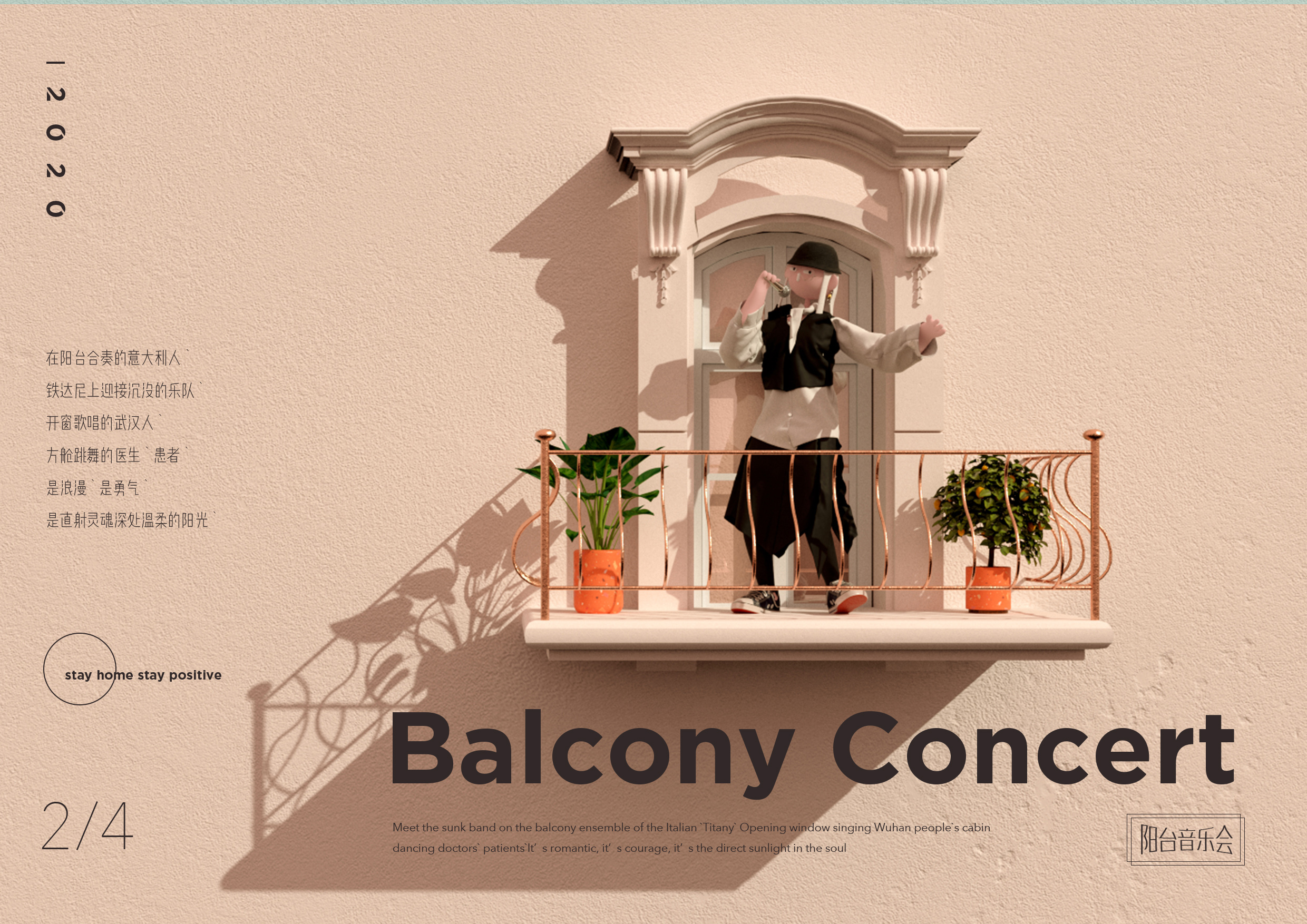 阳台音乐会 2 367 0 三维,设计, 分享 这是一组以意大利阳台合奏为设计灵感的海报设计作品,旨在向大众宣扬于特殊时期保持社交距离,在家中静待花开。 GIF效果展示 赞一下 社畜小分队 ‹ › 发布