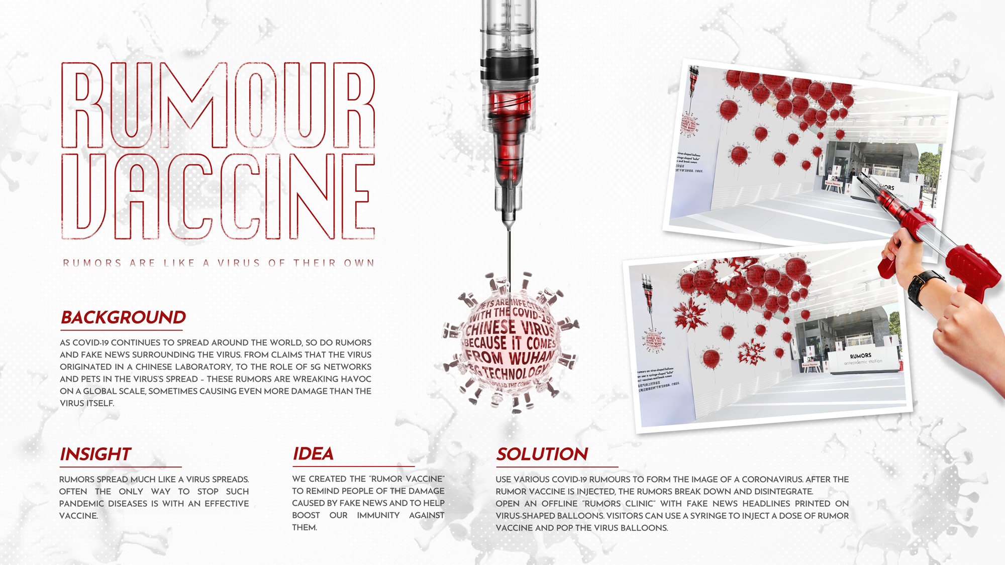 Rumor Vaccine谣言疫苗 1 214 0 Rumors谣言 Virus病毒 Interactive experience互动体验 分享 Rumor Vaccine Caseboard 谣言疫苗Caseboard Rumor Vaccine 谣言疫苗 Interactive experience 互动体验 Rumors are like a virus of their own… 谣言,就是一种病毒 赞一下 3+2 team ‹ › 发布