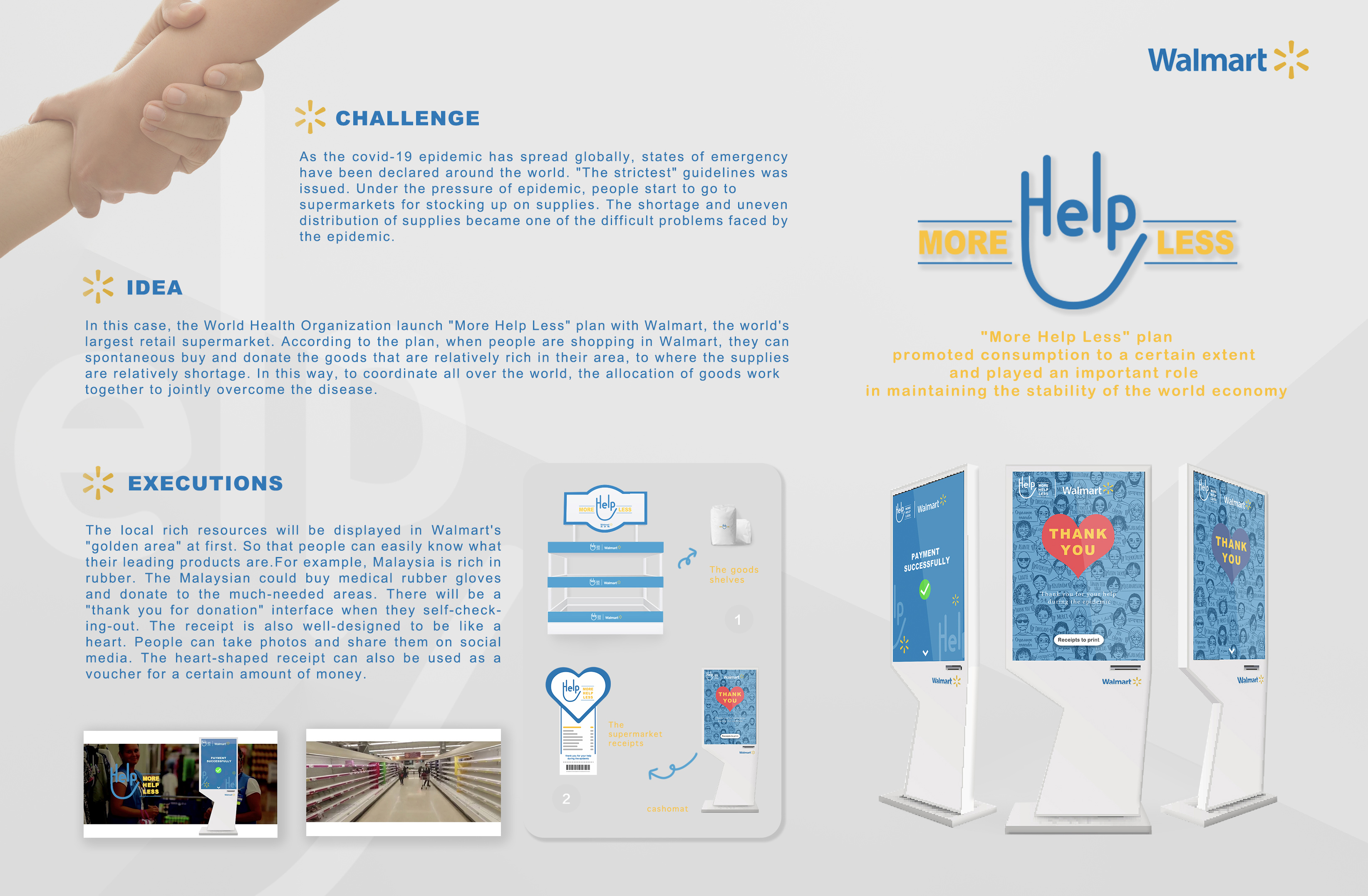 In this case, the World Health Organization launch "more help less" plan with Walmart, the world's largest retail supermarket. According to the plan, when people are shopping in Walmart, they can spontaneous buy and donate the goods that are relatively rich in their area, to where the supplies are relatively shortage. In this way, to coordinate all over the world, the allocation of goods work together to jointly overcome the disease.