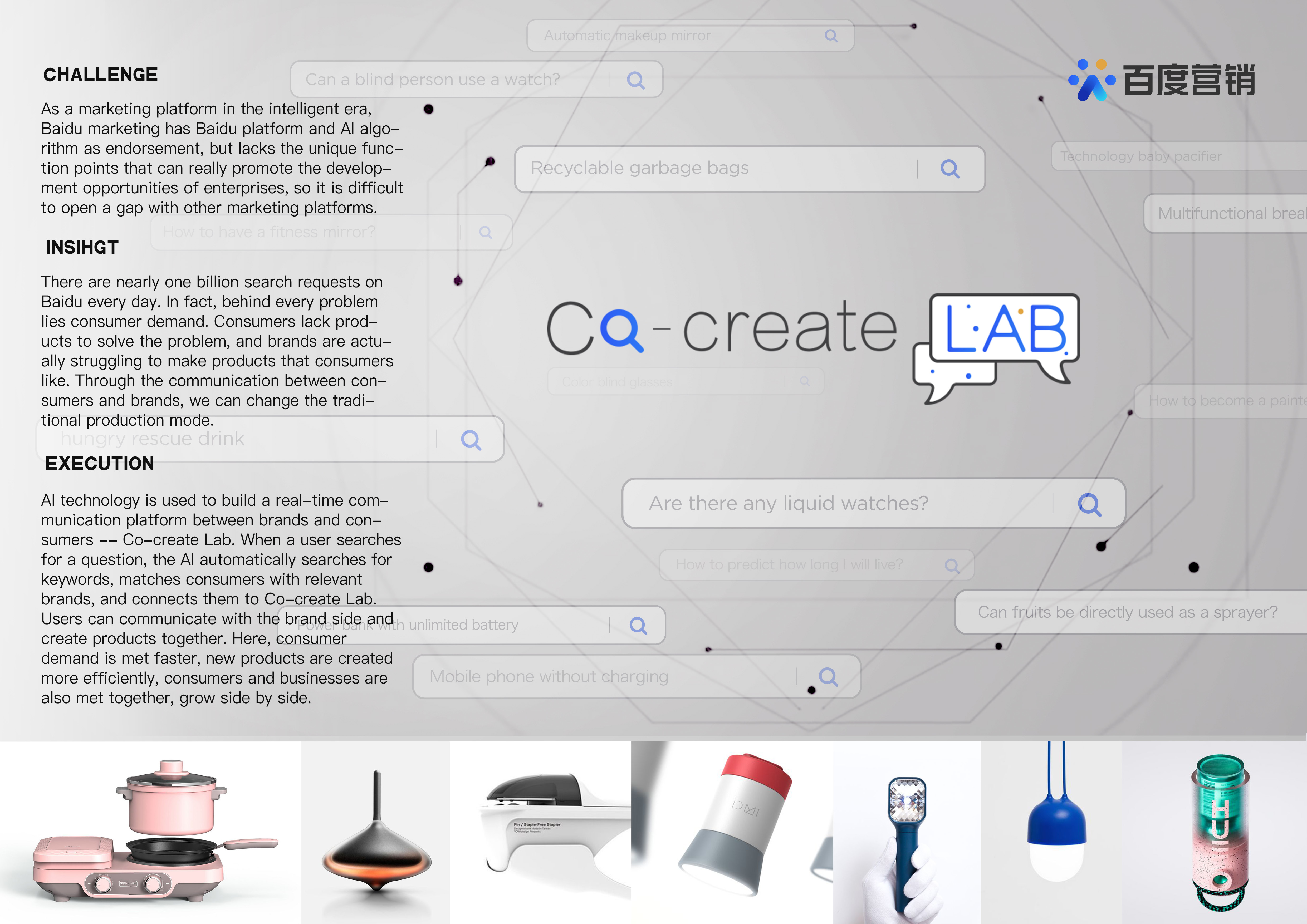 CO-CREATE LAB 3 192 0 IDEA : CO-CREATE LAB 分享 insight:每天百度上有近十亿的搜索请求,其实每个问题的背后都隐藏着消费需求,消费者缺少解决问题的商品,而品牌其实也正苦恼如何做出消费者喜欢的商品。打通消费者与品牌方的沟通,就能变革传统的生产模式。 IDEA : CO-CREATE LAB 赞一下 共创gold ‹ › 发布