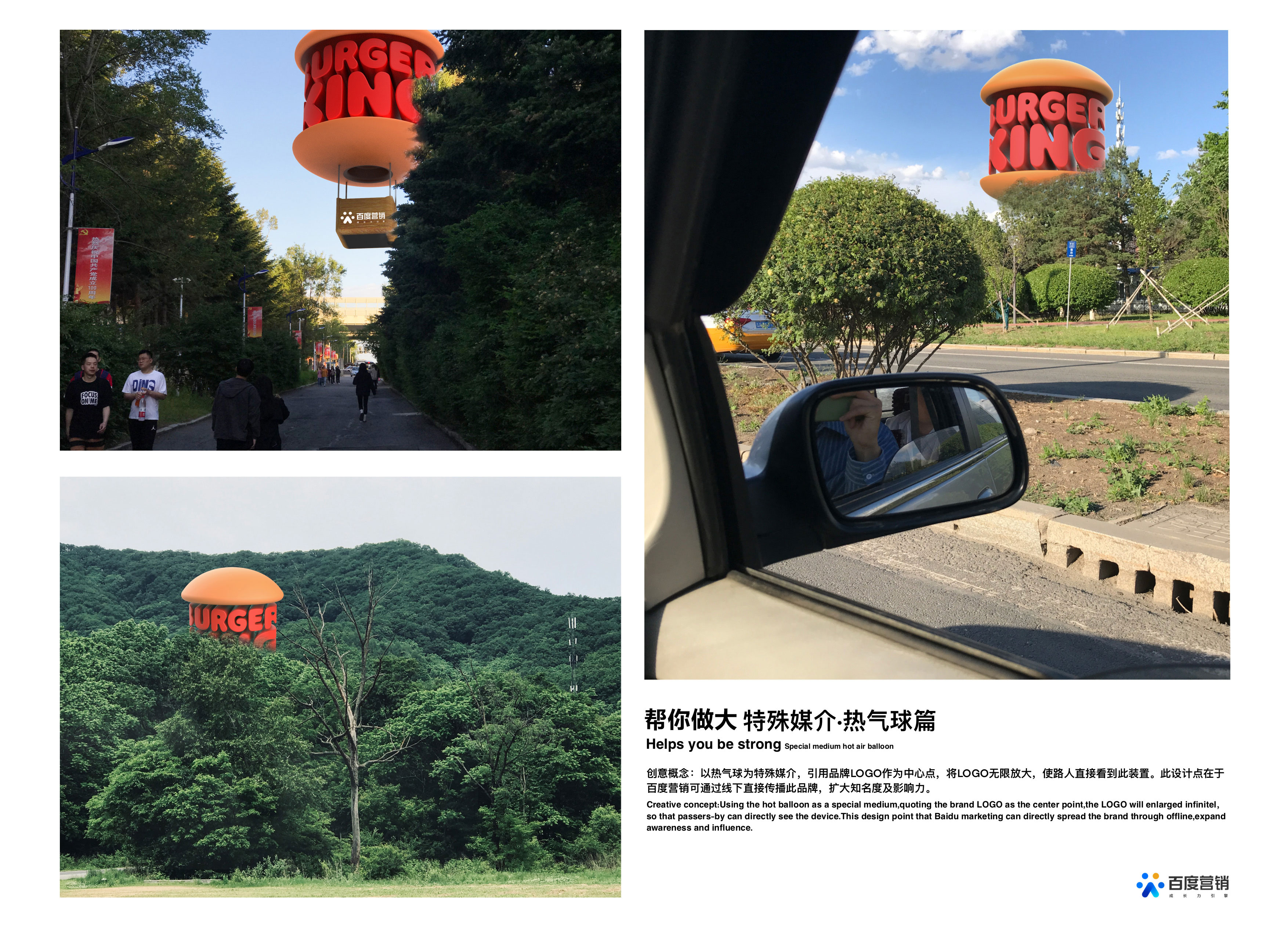 帮你做大 2 228 0 成长力引擎 分享 以热气球为特殊媒介,引用品牌LOGO作为中心点,将LOGO无限变大,使路人直接看到此装置,此设计点在于百度营销可通过线下直接传播此品牌,扩大知名度及影响力。 赞一下 奥利奥 ‹ › 发布