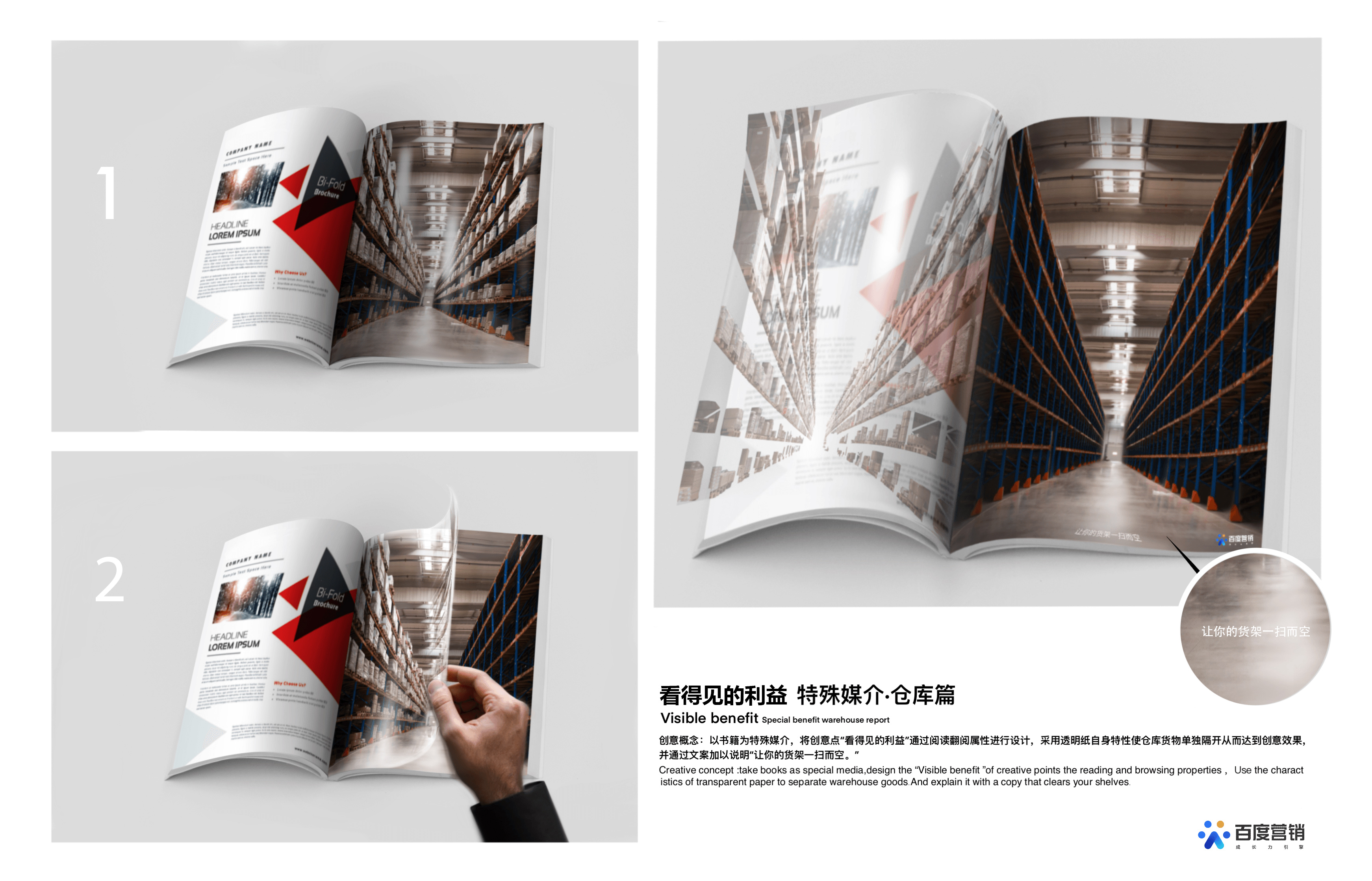 让你的货架一扫而空 5 247 0 把钱花在刀刃上 分享 以书籍为特殊媒介,将创意点“看得见的收益”通过阅读翻阅属性进行设计。采用透明纸自身特性,使仓库货物单独隔开,从而达到创意效果,并通过文案加以说明”让你的货架一扫而空。” 赞一下 奥利奥 ‹ › 发布