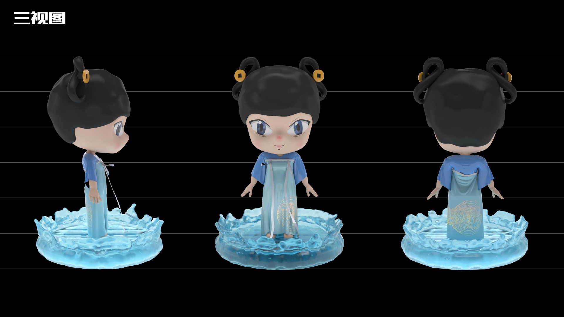3. 三视图:IP设计形象的侧面、正面、背面,全方位展示人物细节。