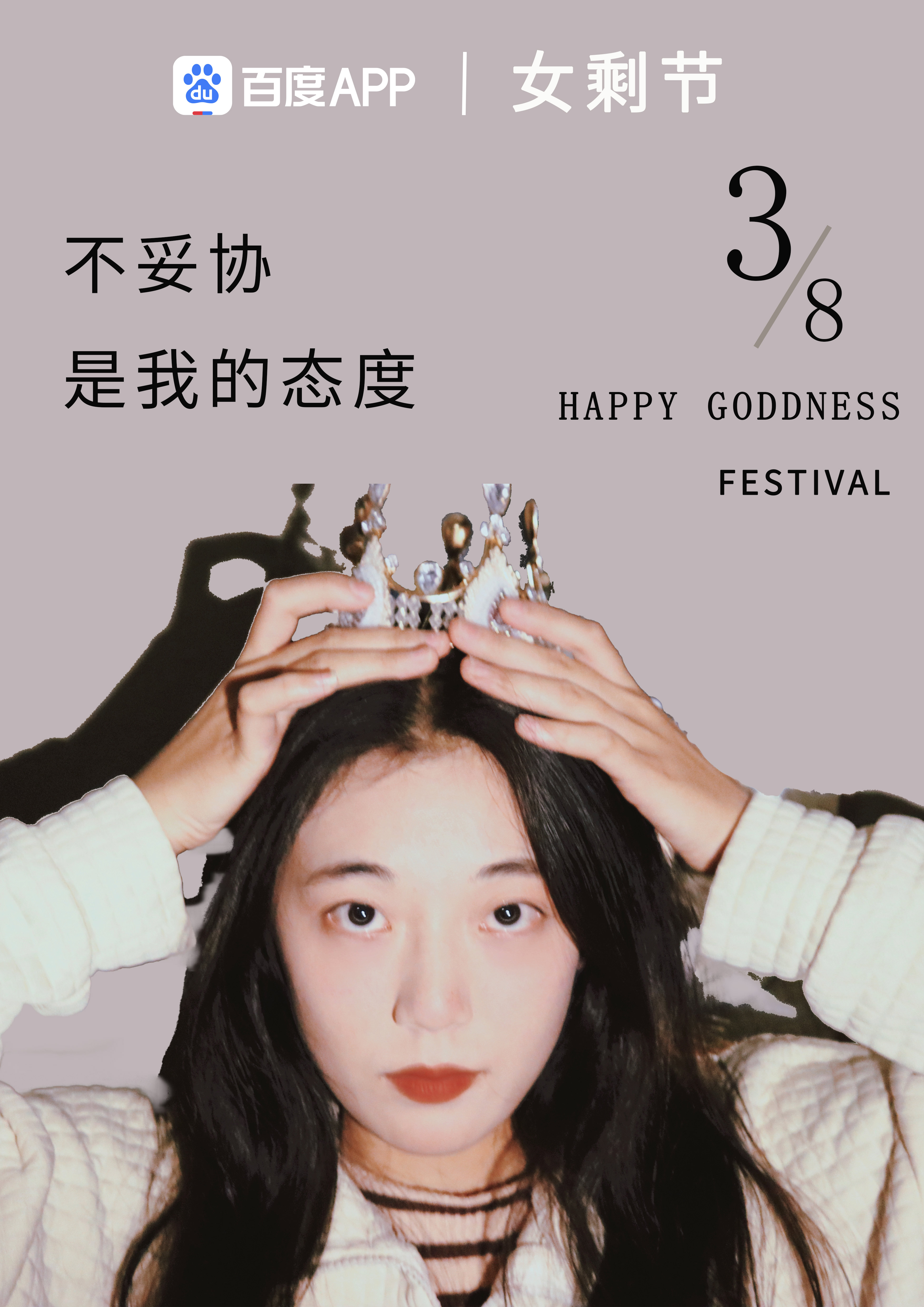 作品主要是针对女性的不同年龄阶段和所呈现的生活态度来创作,第二张主要是运用“妇女节”来创作,妇女节又被称为“女神节”而对于一部分女性来说又被称为“女剩节”,随着社会的发展,晚婚的女性越来越多,但是他们对于感情是认真的,不妥协才是他们对待恋爱的态度,所以说即使是剩女也可以做自己的女王。