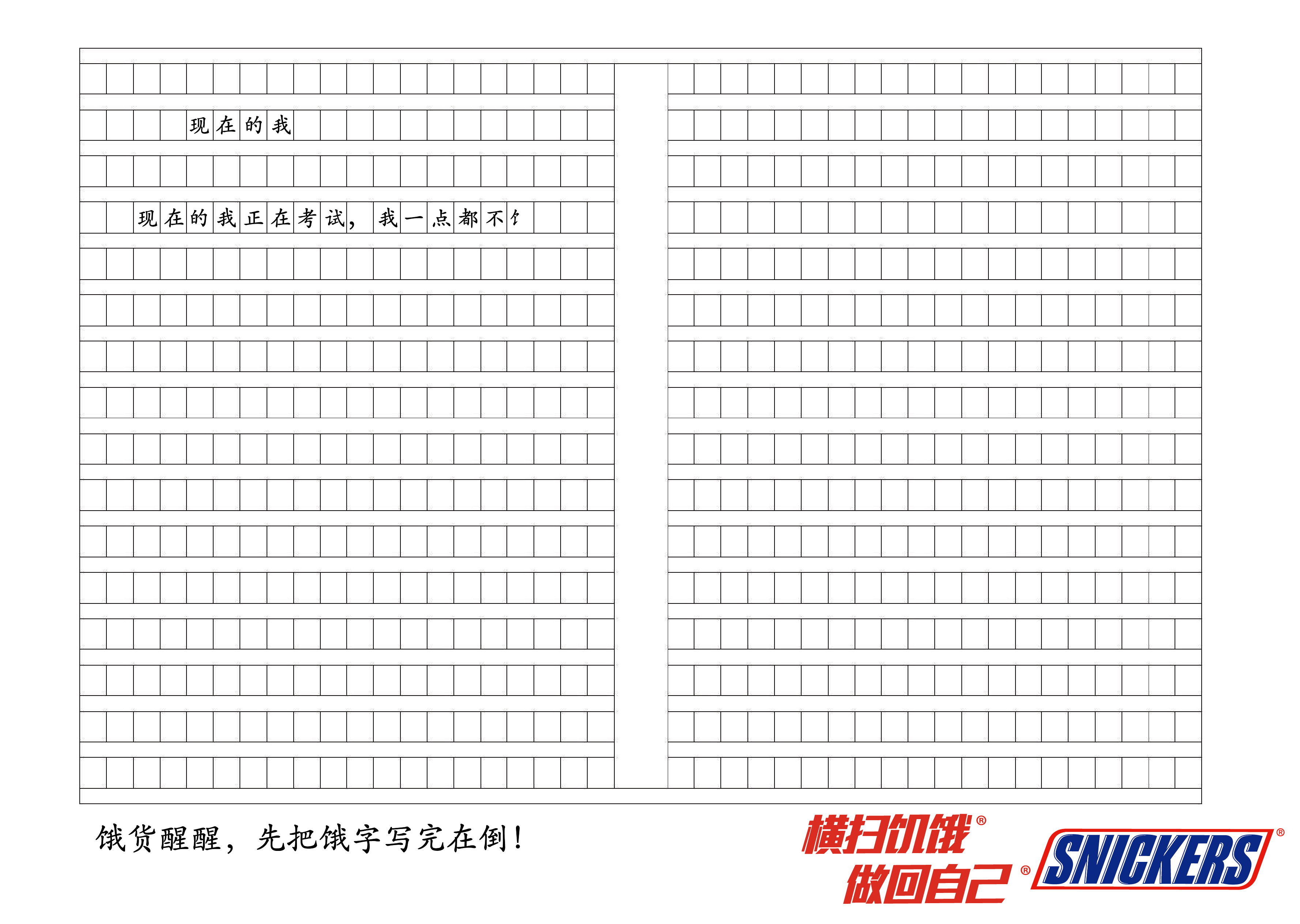 饿货考试篇 381 2781 0 设计 分享 饿货考试看到作文满脑没有思绪,脑袋里只有饿,此刻只有士力架才能做回自己,才能在满篇饿中找到那个我!温馨提示我在左下角。 作文题目现在的我,然而现在的你就是一个饿货,提笔的力气都没有了,连饿写了偏旁就晕倒了,饿货快吃士力架,提笔疾书。 赞一下 CHOENAN 长春市 关注 查看更多信息 ‹ › 发布