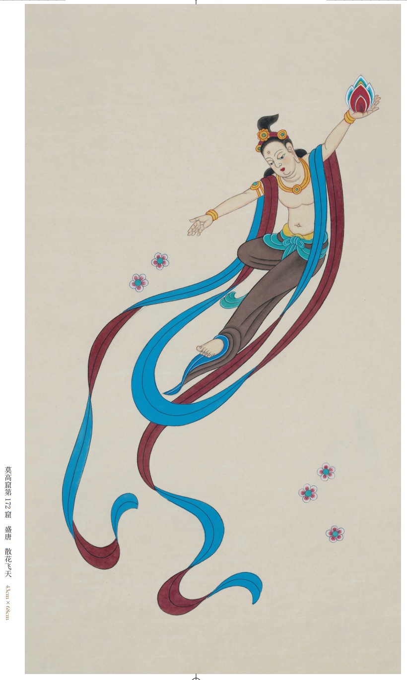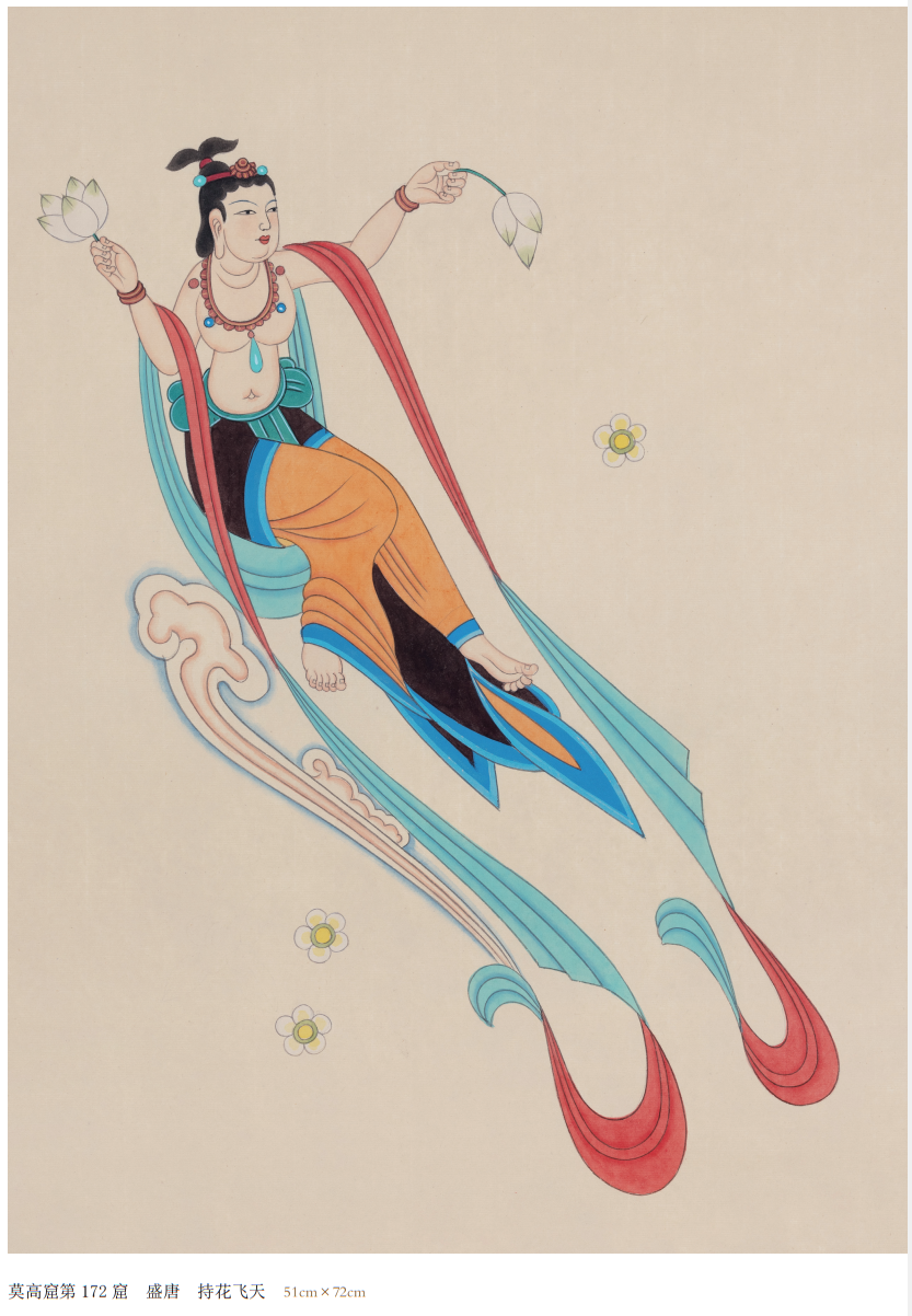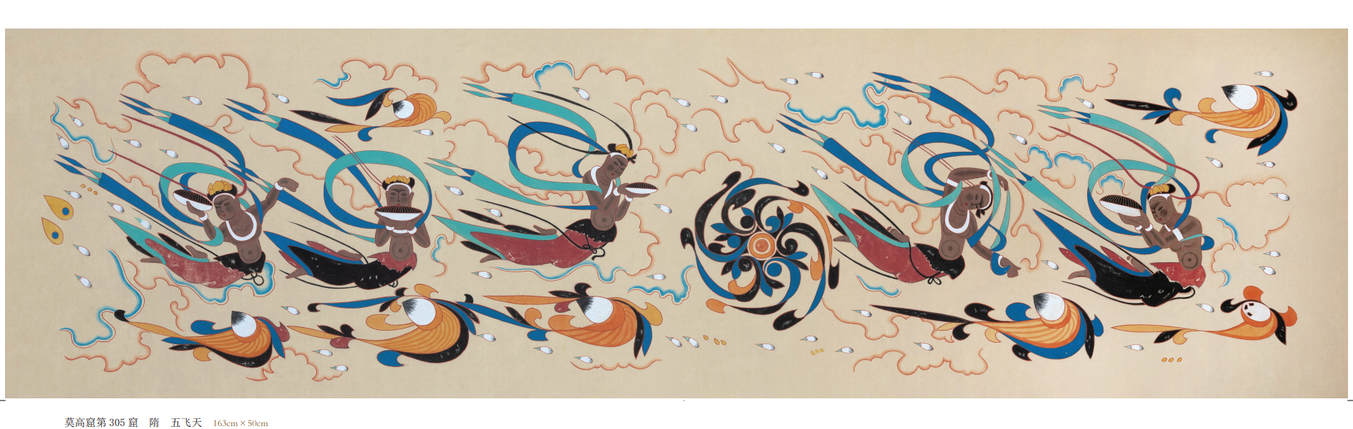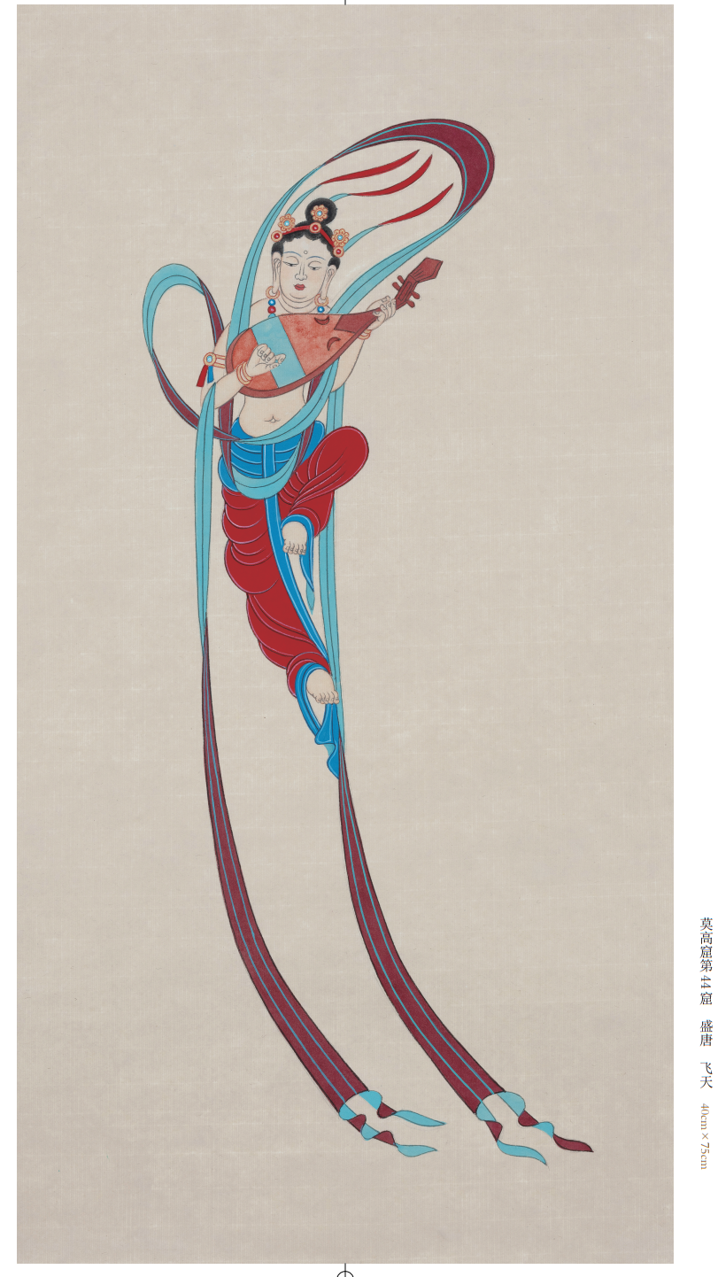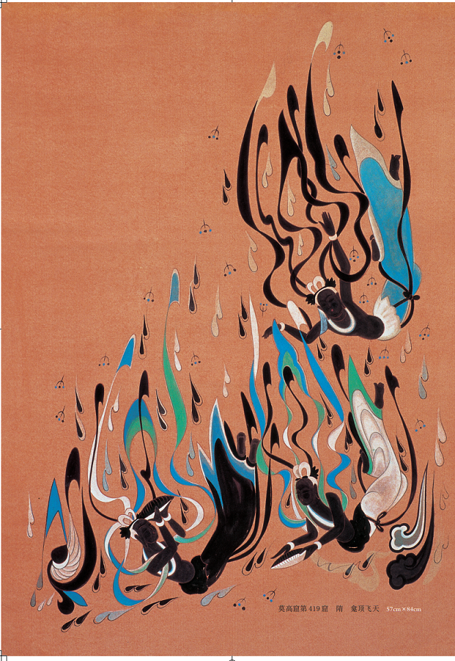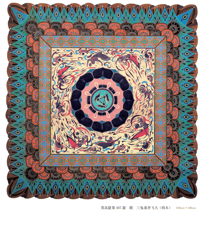 莫高窟第407窟 隋 三兔藻井飞天(绢本)