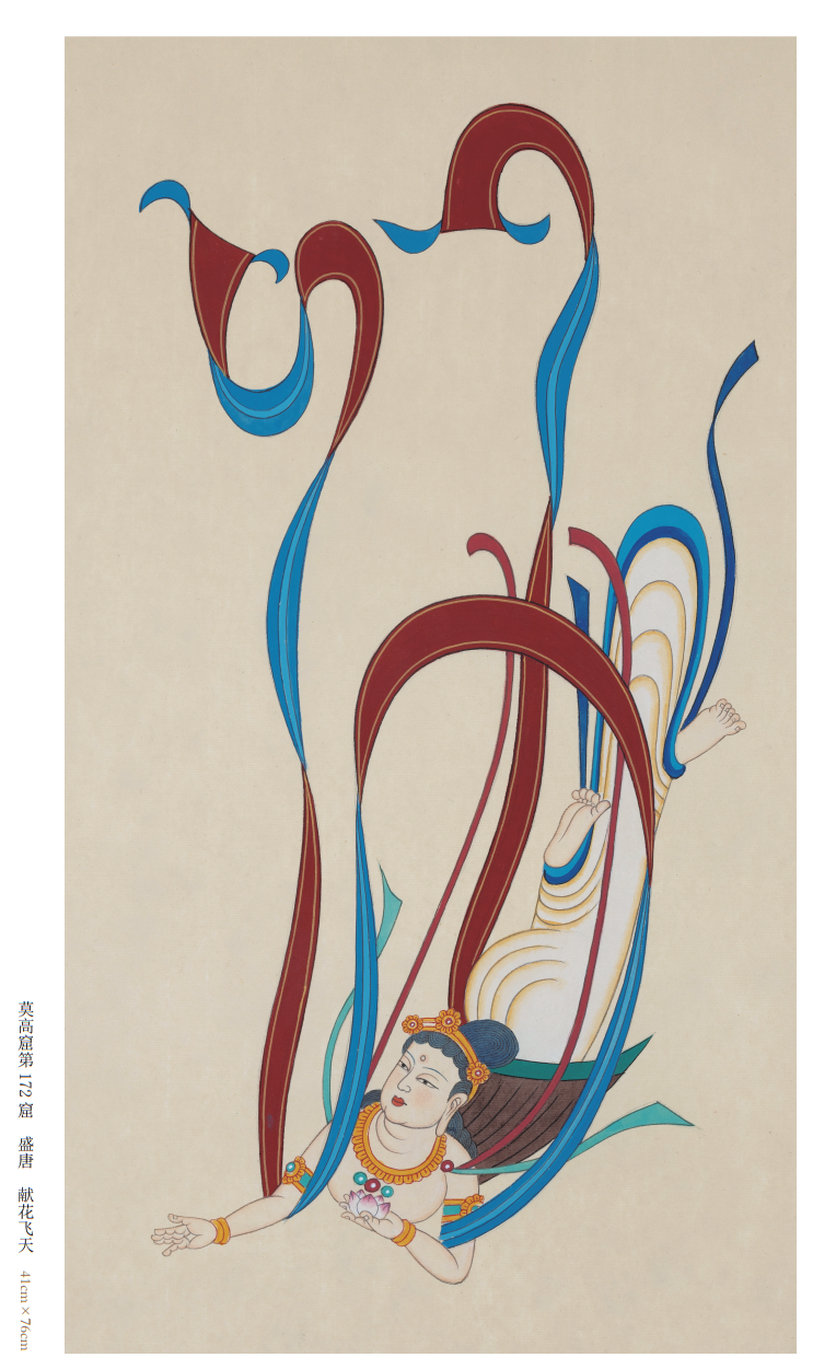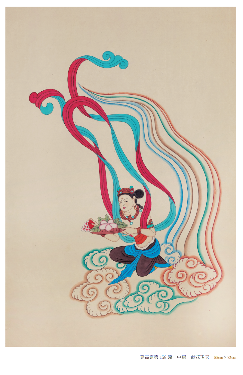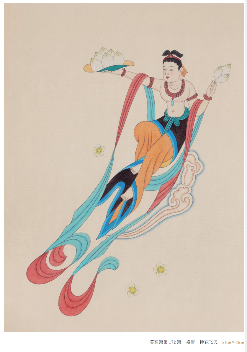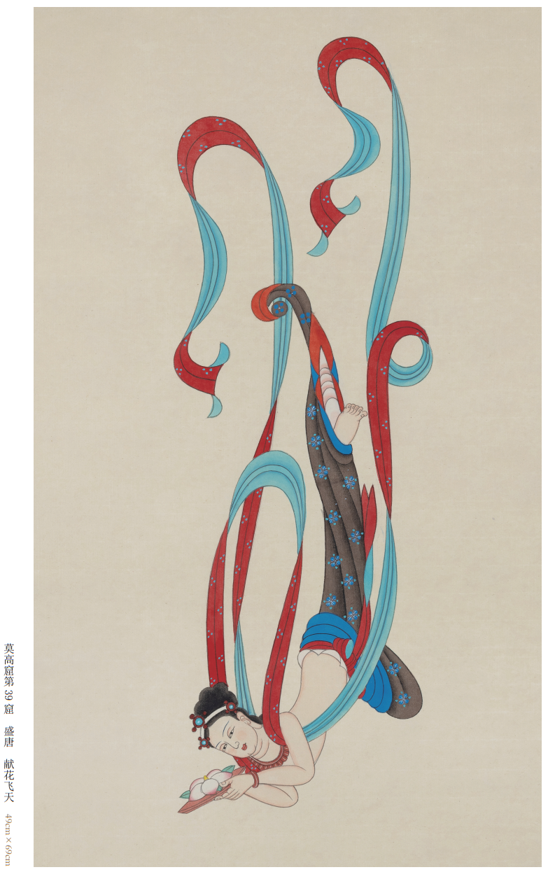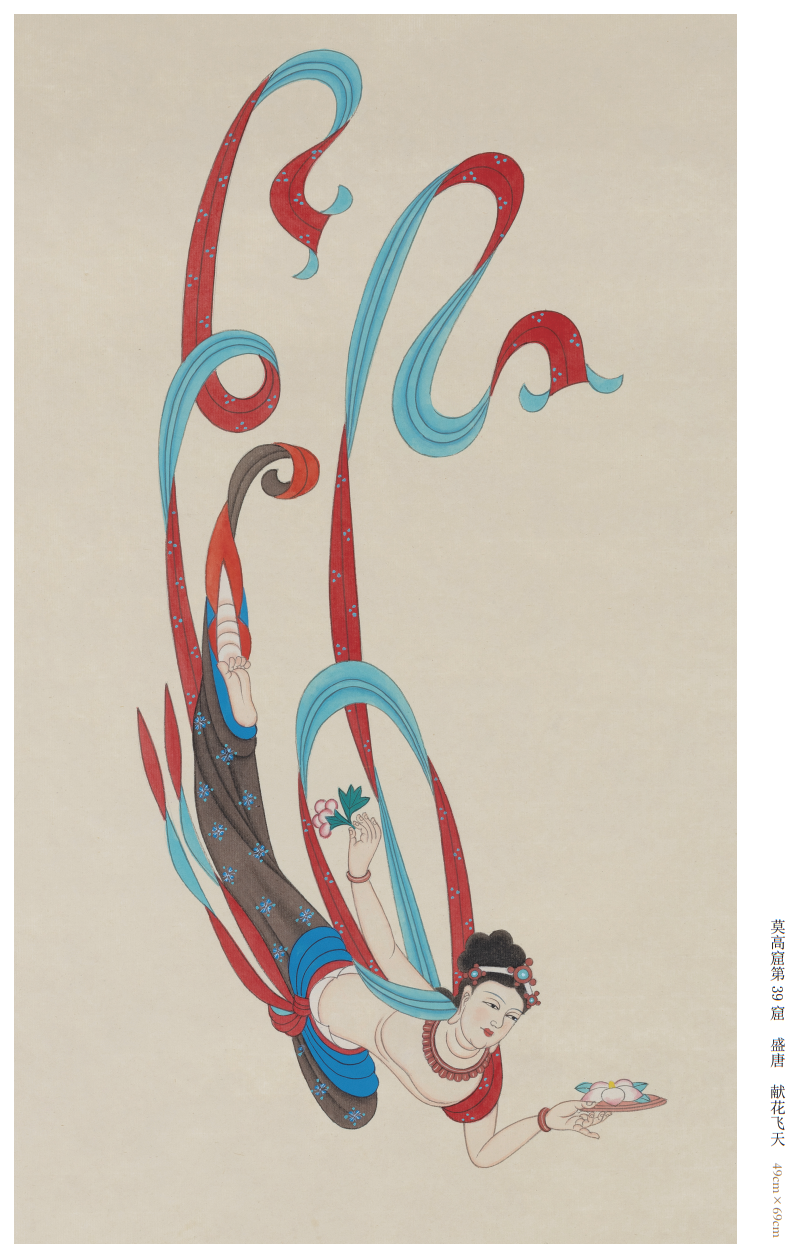 莫高窟第407窟 隋 三兔藻井飞天(绢本)