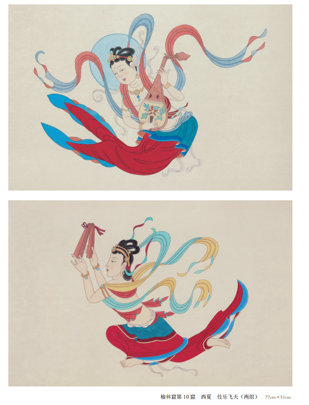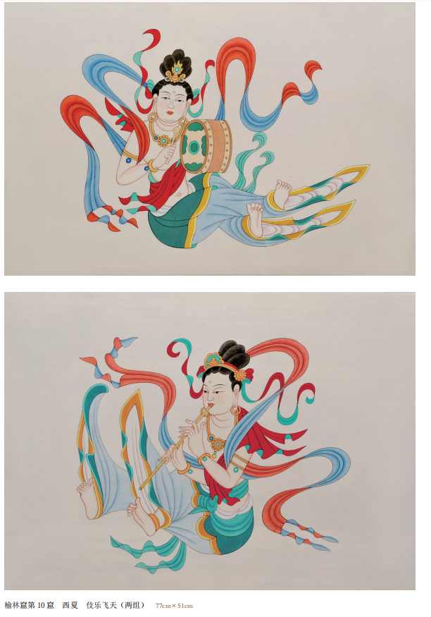 榆林窟第10窟 西夏 伎乐飞天(两组)