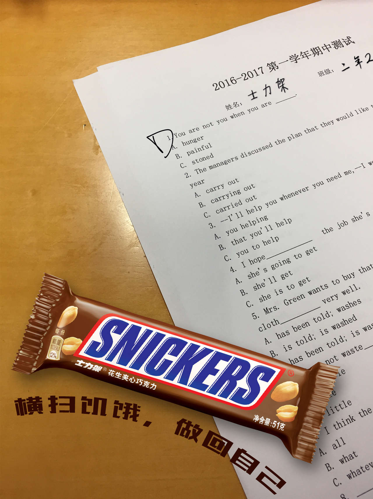 考试饿了?智商下线,明明没有D选项却错选?来条士力架!