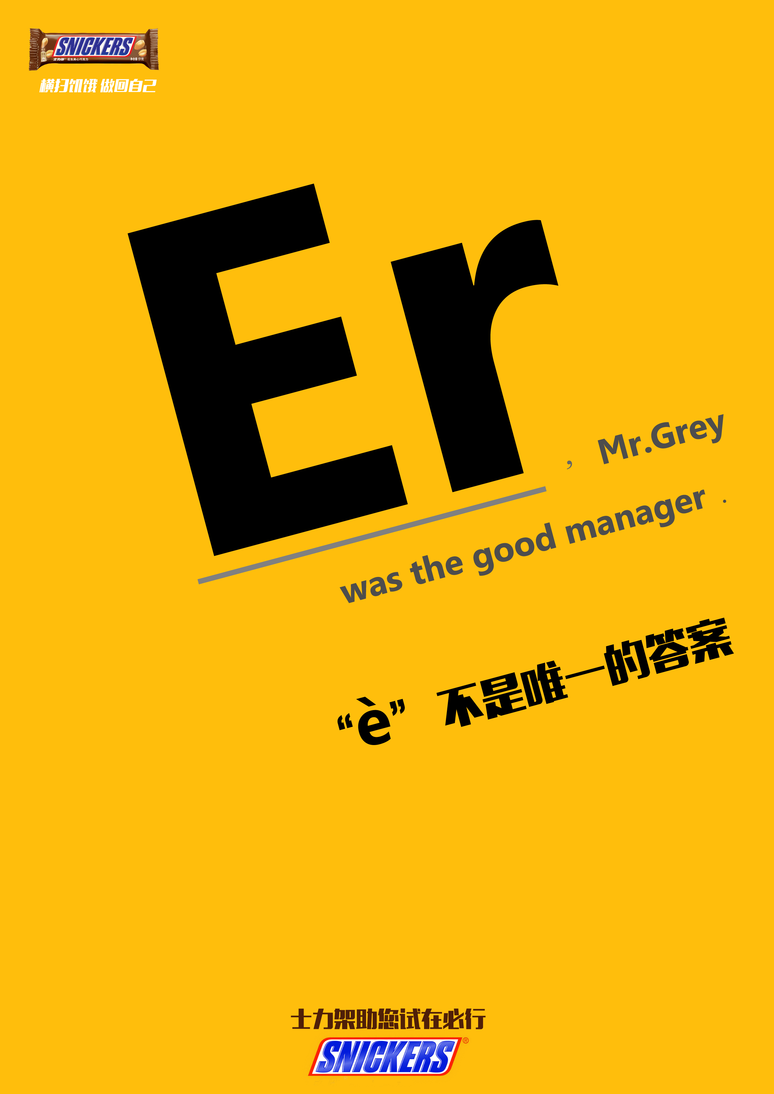 “è”不是唯一的答案 916 3026 0 平面 分享 考生们在考场上因为缺乏能量,出现做错题的情况经常出现,现在,士力架想告诉你,2不是唯一的答案。 考生们在考场上因为缺乏能量,出现做错题的情况经常出现,现在,士力架想告诉你,饿不是唯一的答案。 考生们在考场上因为缺乏能量,出现做错题的情况经常出现,现在,士力架想告诉你,Er不是唯一的答案。 赞一下 NANA 珠海市 关注 查看更多信息 ‹ › 发布