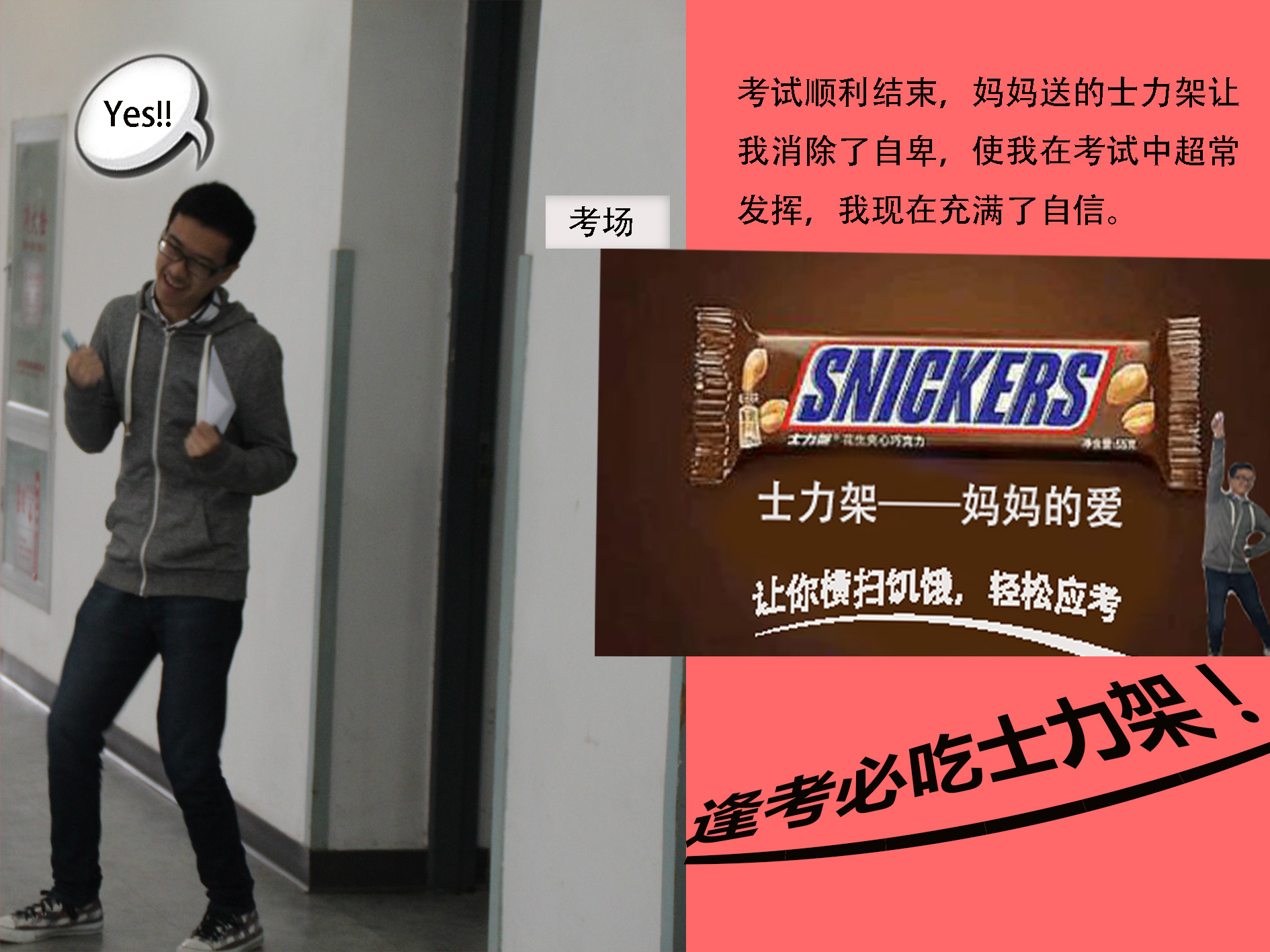 Mom‘s ’Love 611 2215 0 广告创新 分享 以备考劳累为背景,梦中惊现考试失利梦想破灭的场景,醒来后收到快递引出下文。 读完信后主人公甚是感动,移开信发现地下竟然是一盒士力架!给人意想不到的感觉。 接受妈妈的感动和士力架的能量支持后取得了成功! 逢考必吃士力架,士力架让你逢考必过! 赞一下 Thinking Storm ‹ › 发布