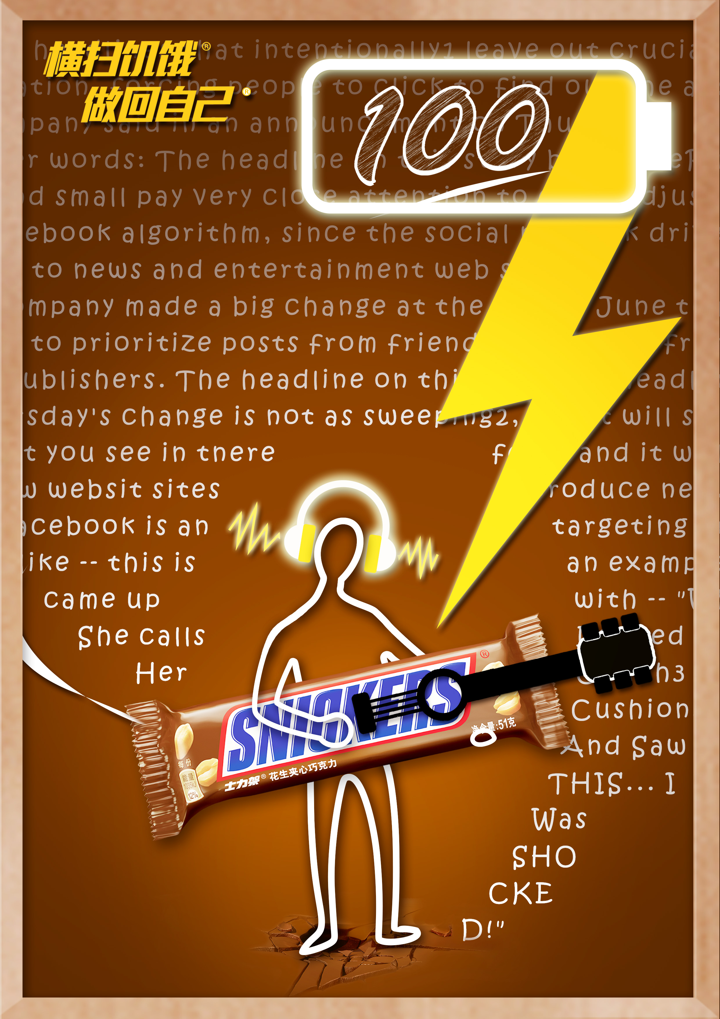 考场上变成饿货怎么办?!头脑一片浆糊什么都想不到,知识变得模糊又乱糟糟......士力架动力火箭让你重拾条理,做回你自己!犀利到上天,拥有批卷老师一样的爆发力,随意掌控分数! You'll get confused and your brain is blank when you're starving. Snickers——the energy rocket, help make your thoughts coherent. You can control your scores as well as teacher.