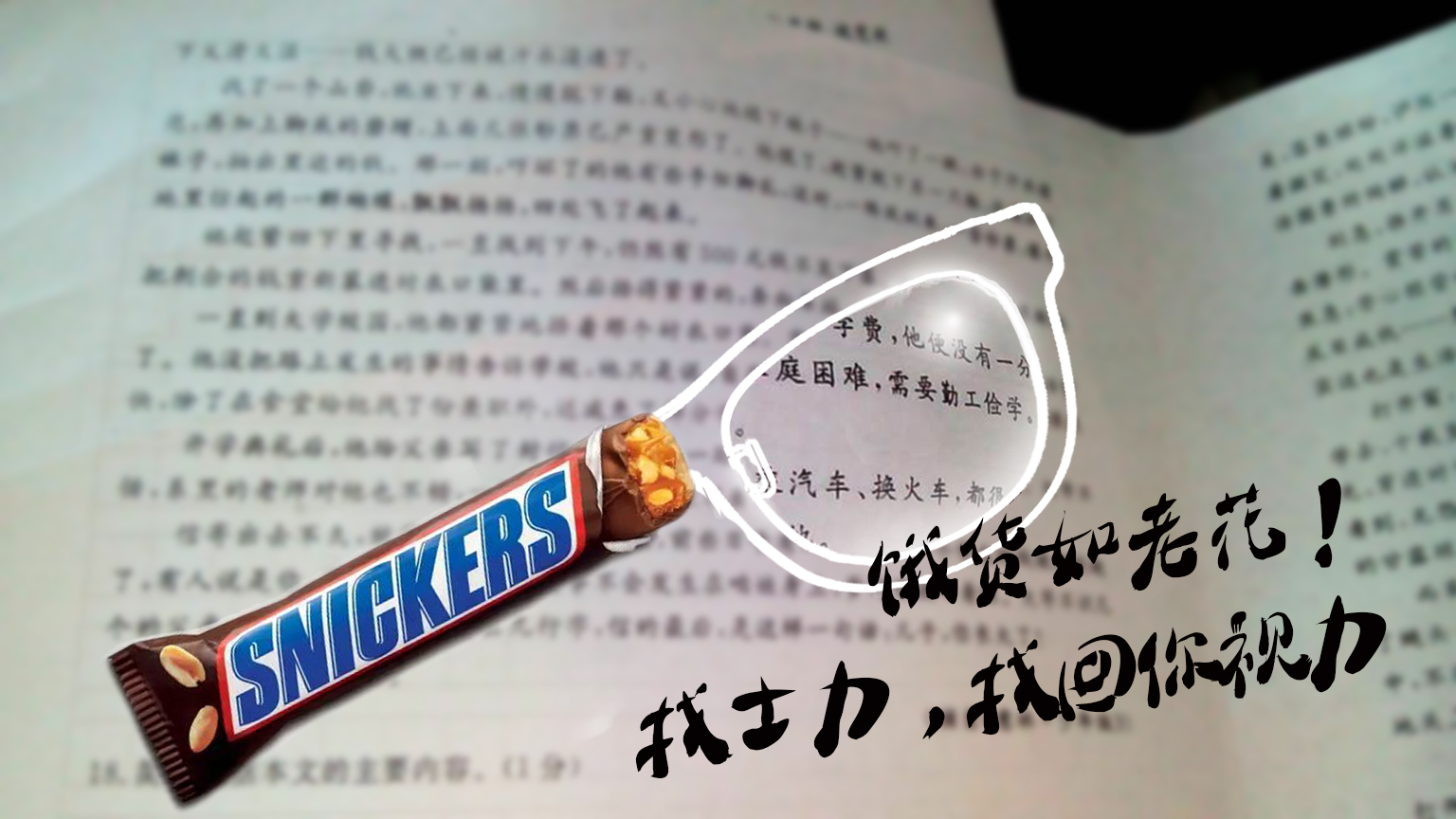 备考时或考试时饿得头昏眼花?来根士力架吧,一口找回你的最佳视力