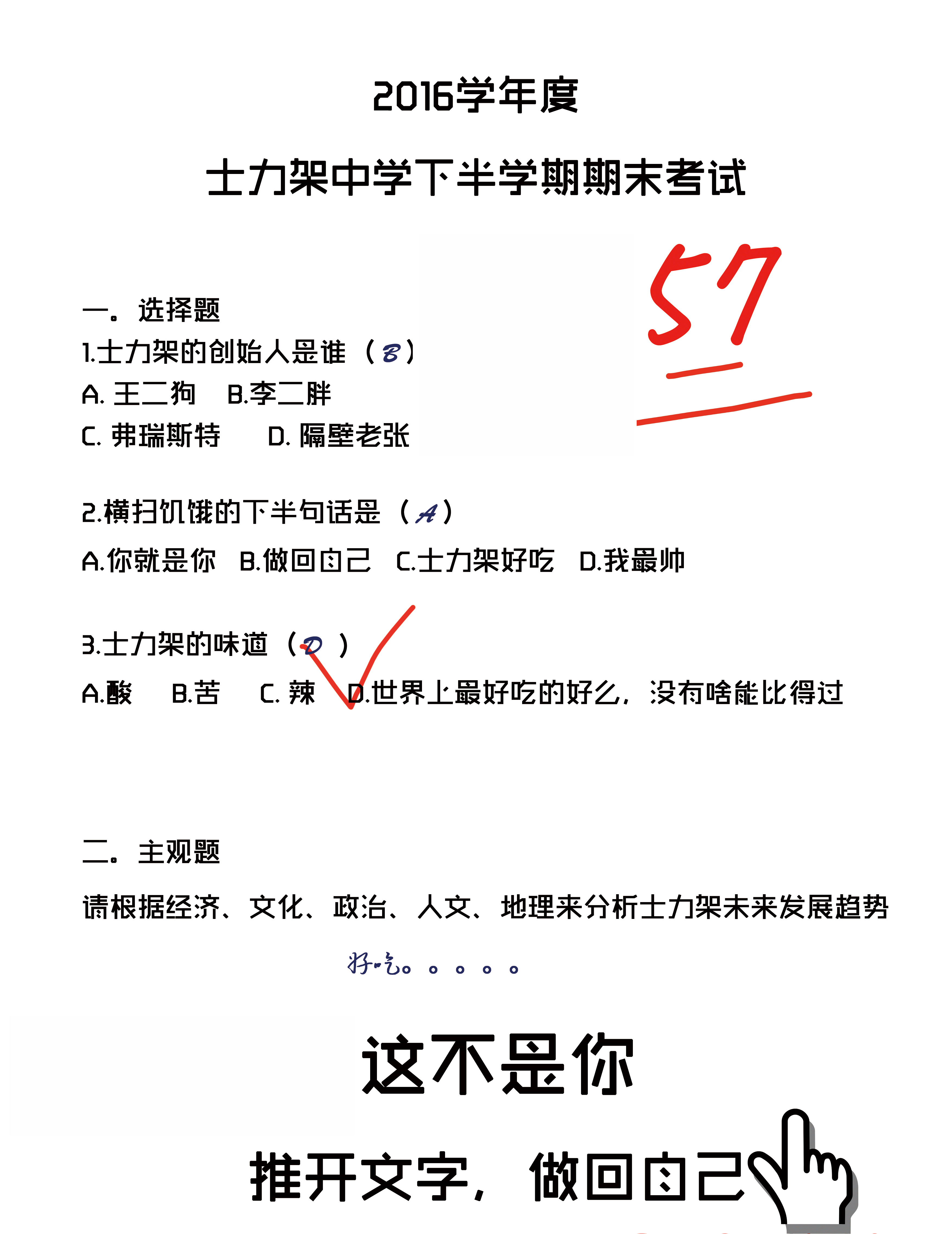 第二组设计我们希望能以一种小互动的形式吸引人们的注意力。 考试紧张,发挥失常,这不是你该有的成绩。你可以做到更好,但你却因为紧张或饥饿等不必要因素而影响考试发挥,这非常的可惜。所以我们希望以这种小互动,拉开底下的文字,联动上方的分数,给考生带来一种观念,考前来条士力架,不紧张不手软,从而发挥出自己最好的水平。 我们的设想是这样的小互动可以放在公交站台隔壁,吸引那些在此站候车或者下车的人们的注意力。而且这种小互动不耗费时间,还能带来一些娱乐。