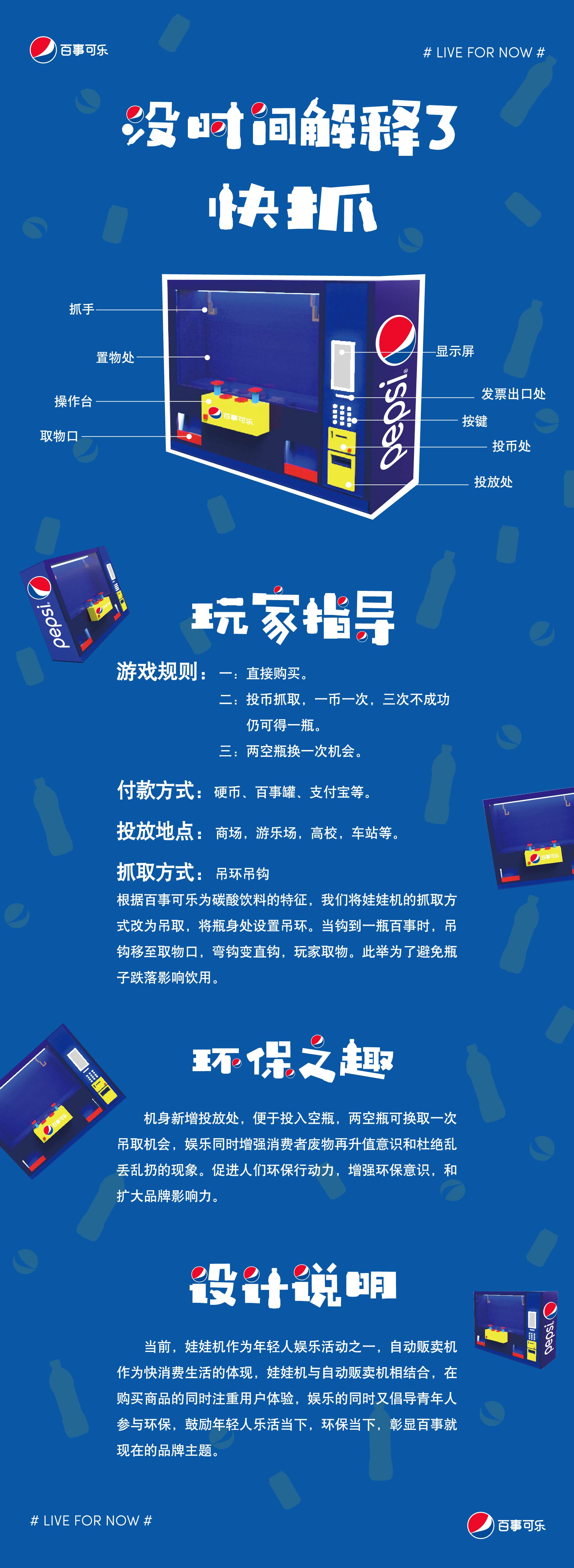 #百事 就现在# 来不及解释了 快抓 1145 2474 0 设计 创新 环保 分享 #百事 就现在# 我们这一产品将商业、娱乐与环保公益相结合,在一定程度上刺激了消费者的购买欲望,提升了商家的盈利,同时又增强了消费者的环保意识。 赞一下 没时间解释了 ‹ › 发布