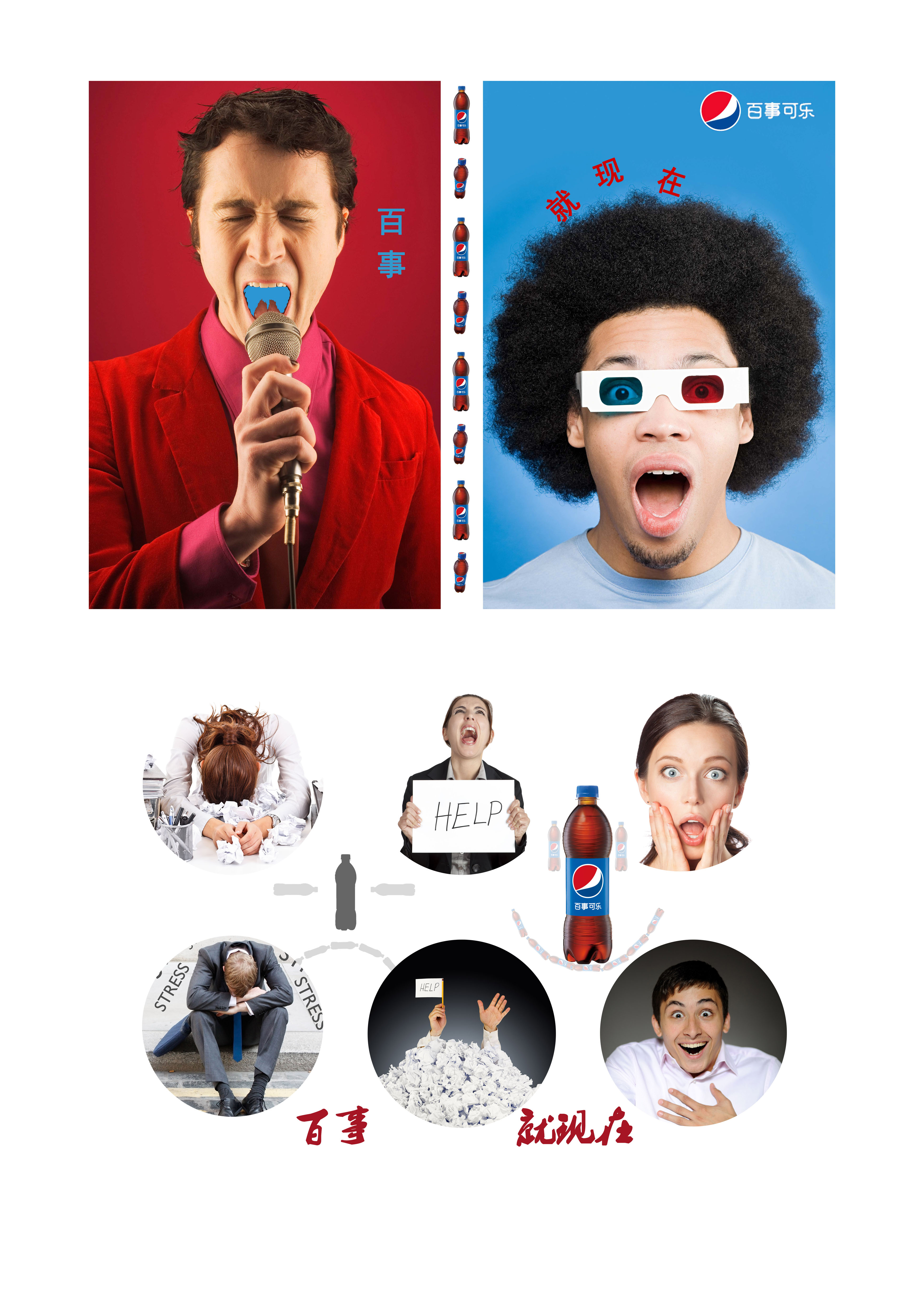 百事可乐 乐在其中 503 3057 0 平面设计 分享 1.唱歌是当下处在生活压力之中的年轻人缓解压力最常见,最有效的方式之一,看3D立体电影也是年轻人寻求视觉刺激和释放压力的方式之一,喝百事可乐同样是当下年轻人追寻时尚画面背景运用百事可乐Logo的红蓝色来突出产品特性,选取人物的表情也符合产品所带给人口感的享受和精神的愉悦。 2.刚入职的公司小白承受着被BOSS骂,被同事冷嘲热讽,被超出常人能力范围内的工作量的“折磨”,内心接近崩溃,想要寻求帮助之时,一瓶百事可乐的出现,给予公司小白无限的刺激和潜力发挥的可能。 赞一下 Elvina 哈尔滨市 关注 查看更多信息 ‹ › 发布