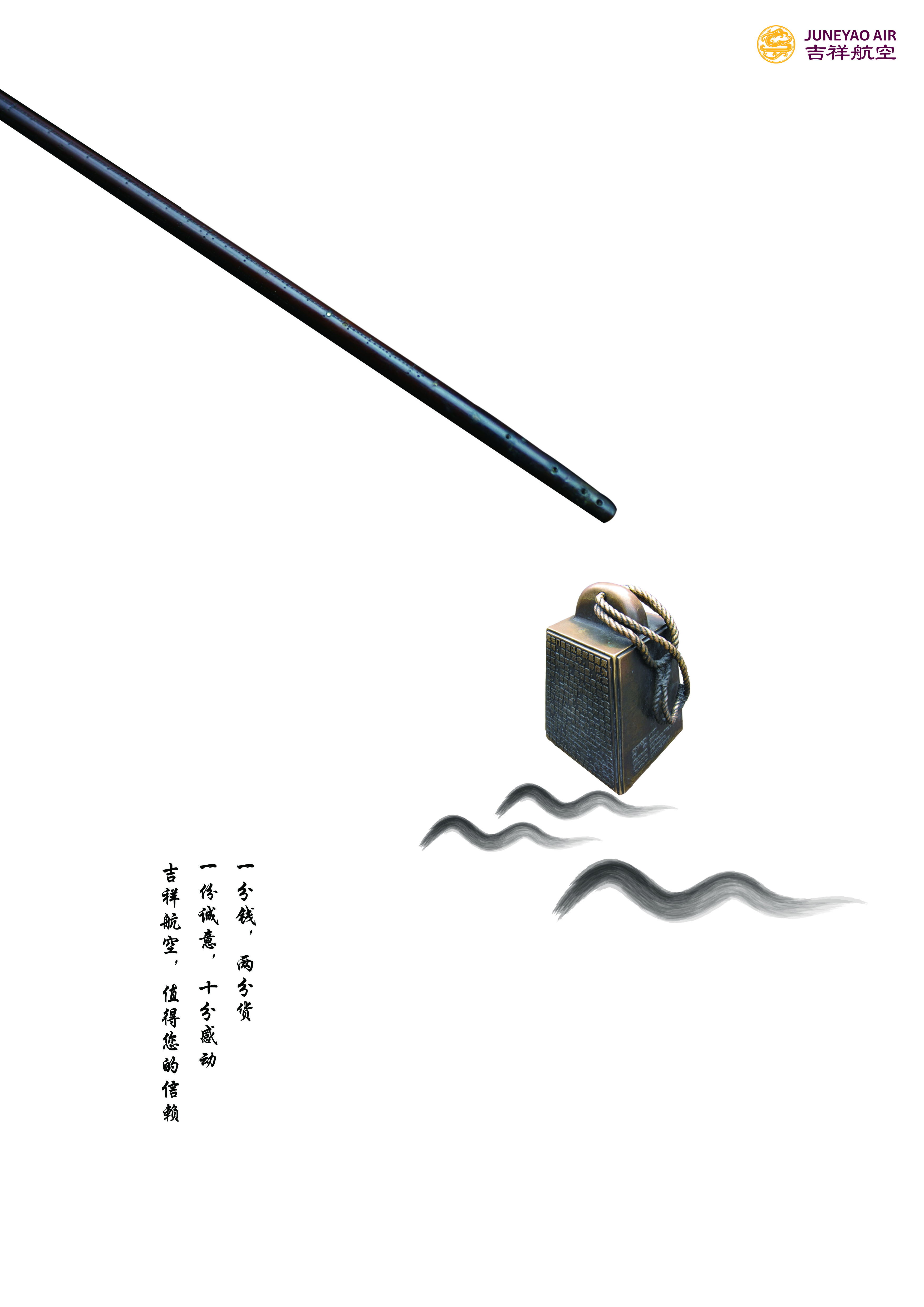 《一分钱,两分货》 918 2389 0 平面 分享 谁说一分钱只能买到等值物品?谁说一分真心换不来十分诚意? 原始杆秤使用时如果商品超过坠物重量就会倾斜于商品一端。 吉祥航空性价比极高,就如同这画面中杆秤一样,同样的价钱给你更好的服务。 赞一下 有限 ‹ › 发布