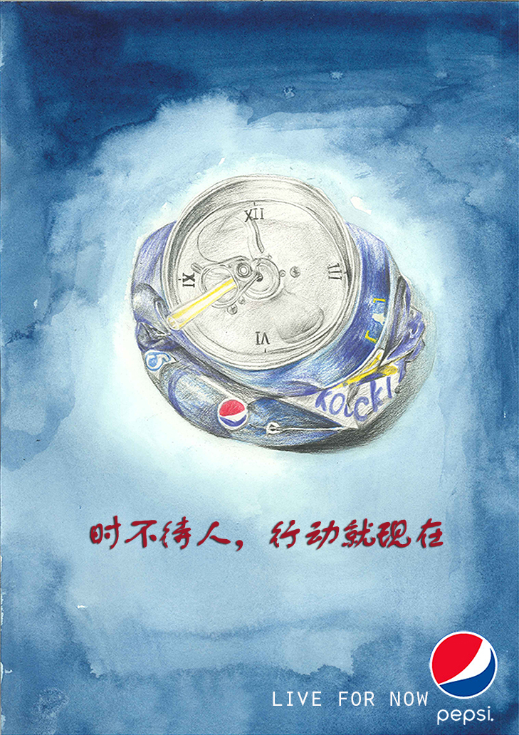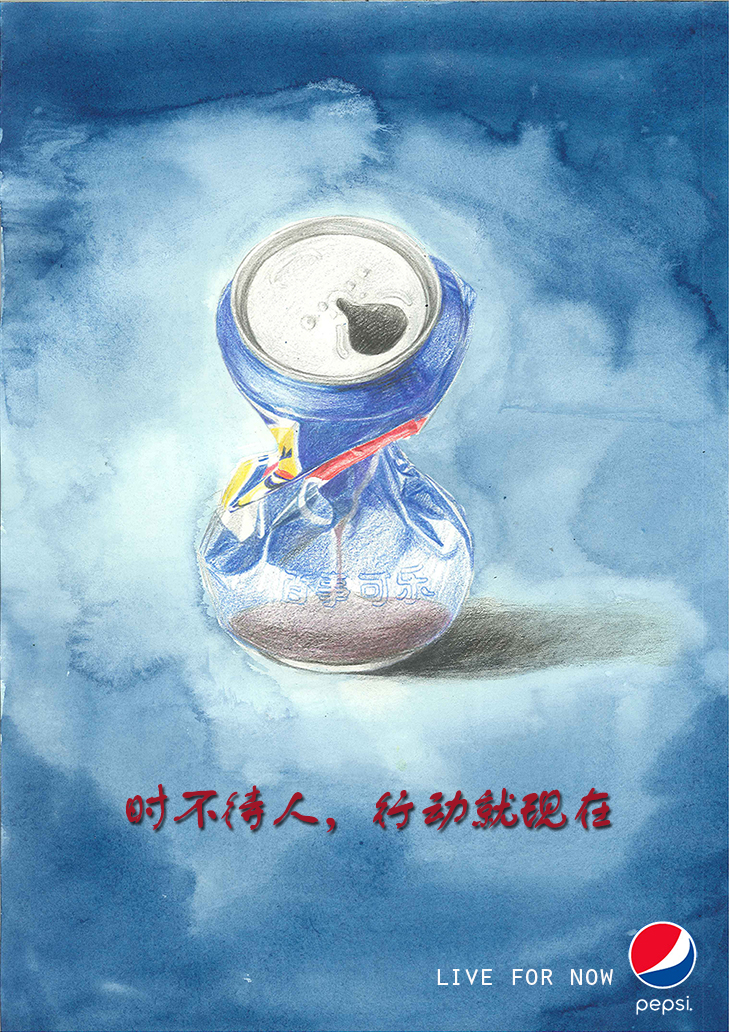 行动就现在 780 2219 0 设计 分享 沙漏的流失提醒着人要珍惜时间,把握现在,活在当下,扭曲的百事可乐瓶子寓意着年轻的韧性。时间在流逝,我们能做的只有行动,行动就现在。 百事可乐瓶装顶部和时钟的形状相似,可以将它看做一个时钟,还加入吸管的元素,指着早晨七八点,告诉人们年轻就像七八点钟的太阳,有朝气、有活力,从现在起要珍惜时间,把握时间,用年轻人该有的朝气去积极对待、做好每件事。 赞一下 稳住我们能赢 ‹ › 发布