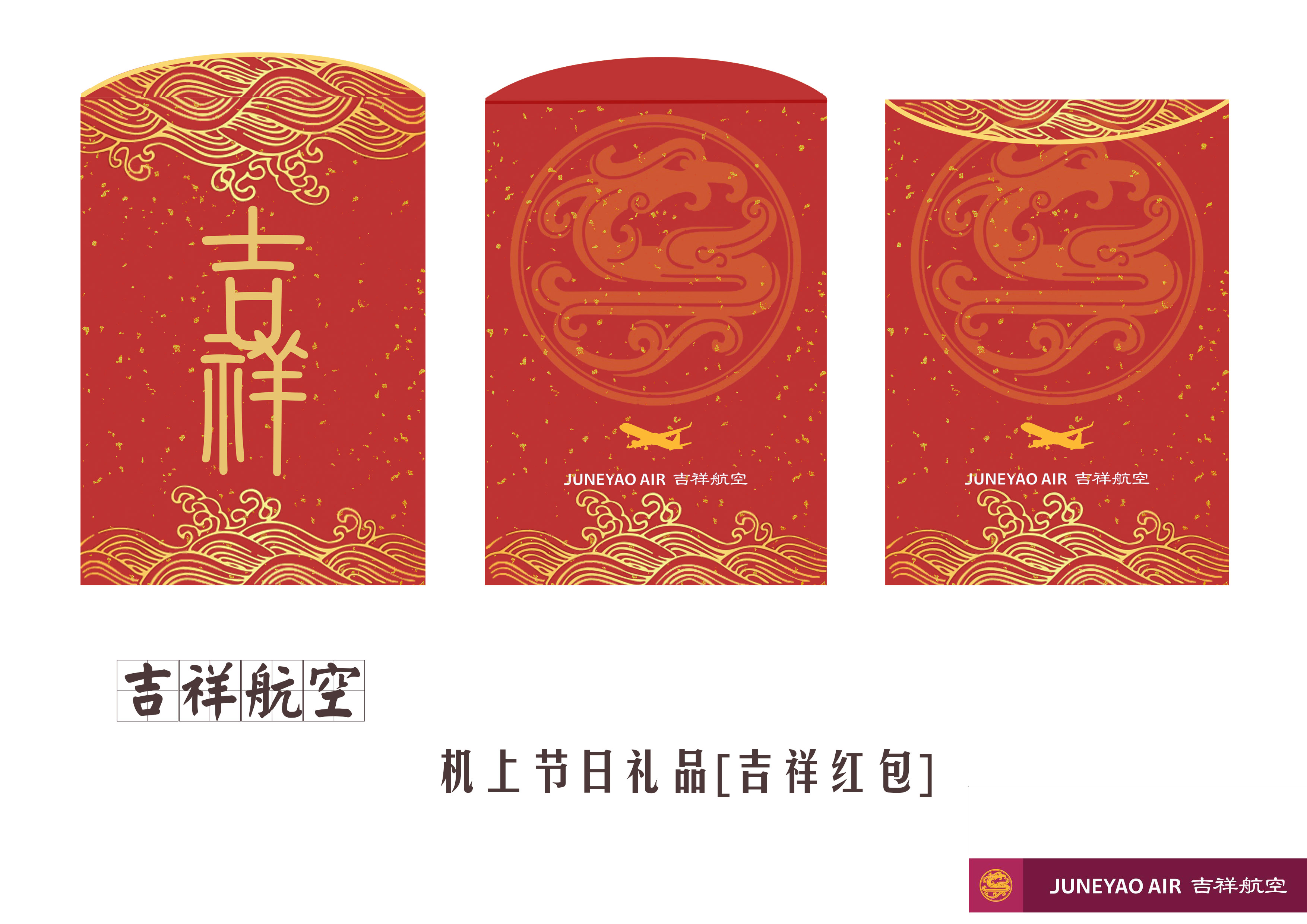 选取祥云,吉祥航空logo , 金箔 元素进行设计的吉祥红包 。