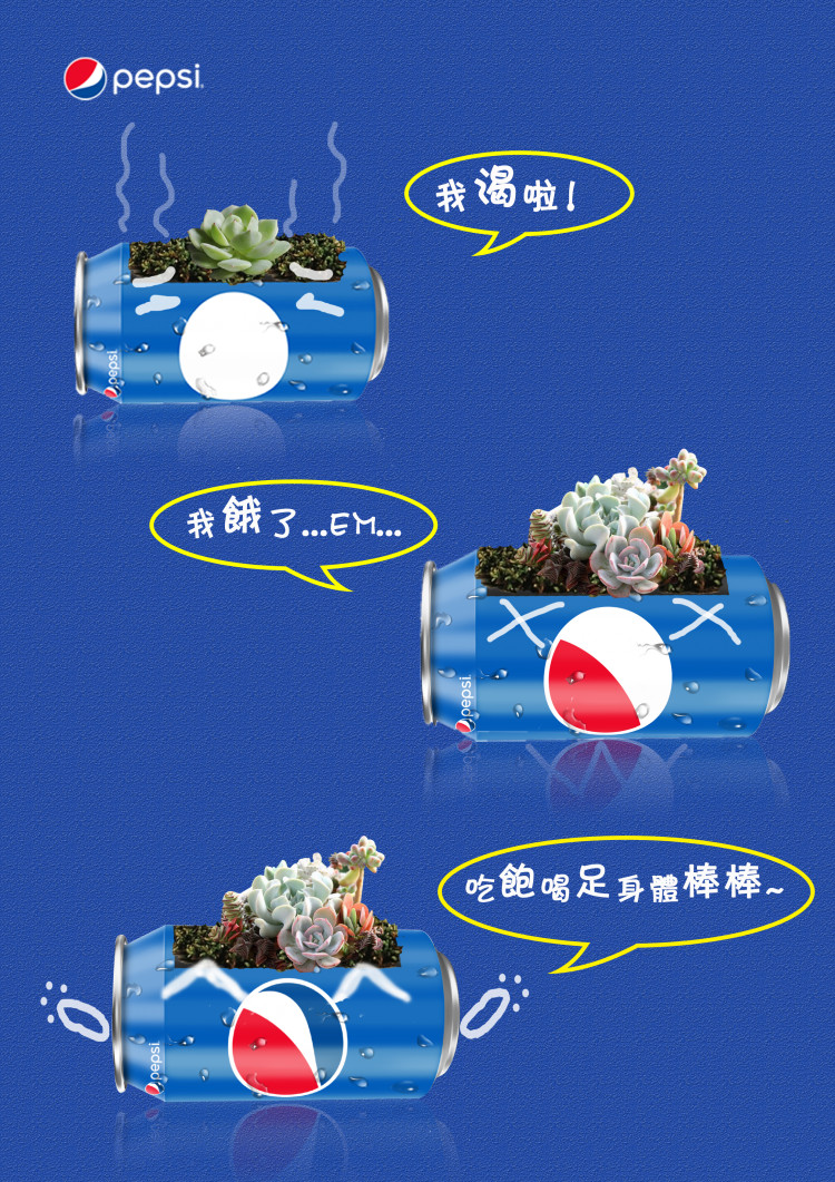 缺水、缺肥料和正常状态下百事乐享生活瓶logo的变化