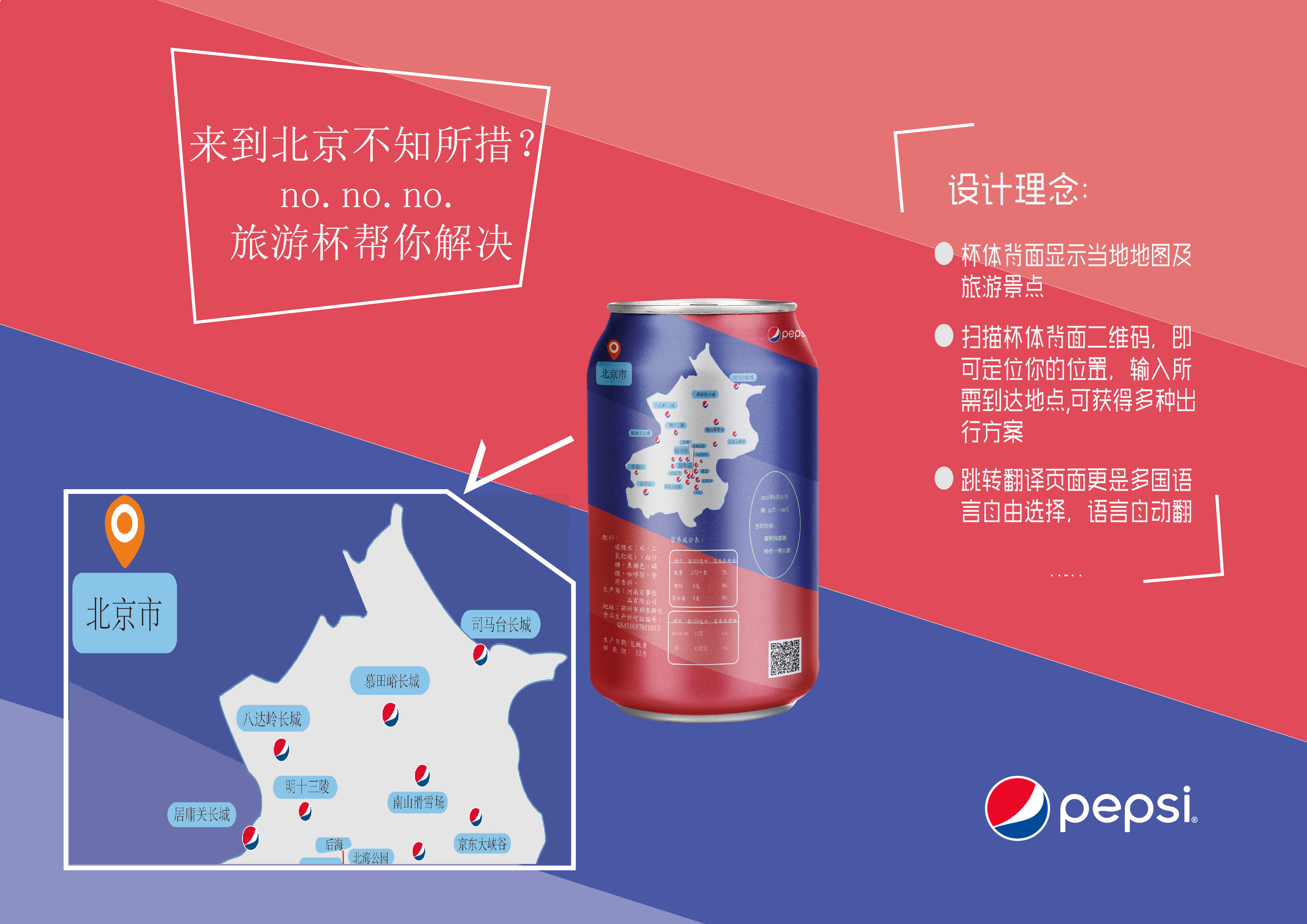追随时代的步伐,运用大数据背景下的科技手段与百事旅游杯相结合进行创作。