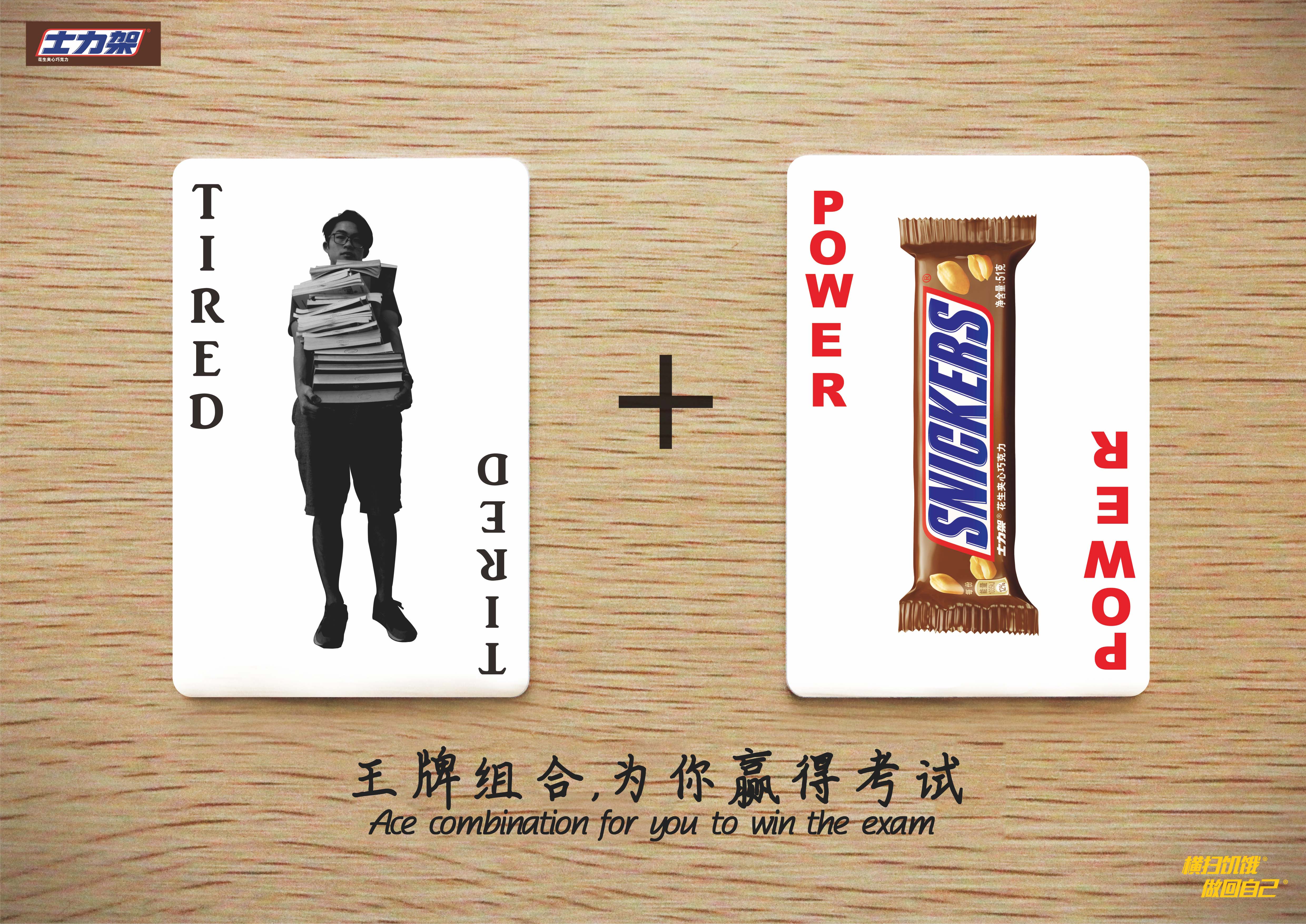 “王炸”是斗地主中最无敌的王牌组合。我们的设计上也希望士力架能做到无敌,帮助我们考学的同学驰骋考场,给他们提供源源不断的能量。