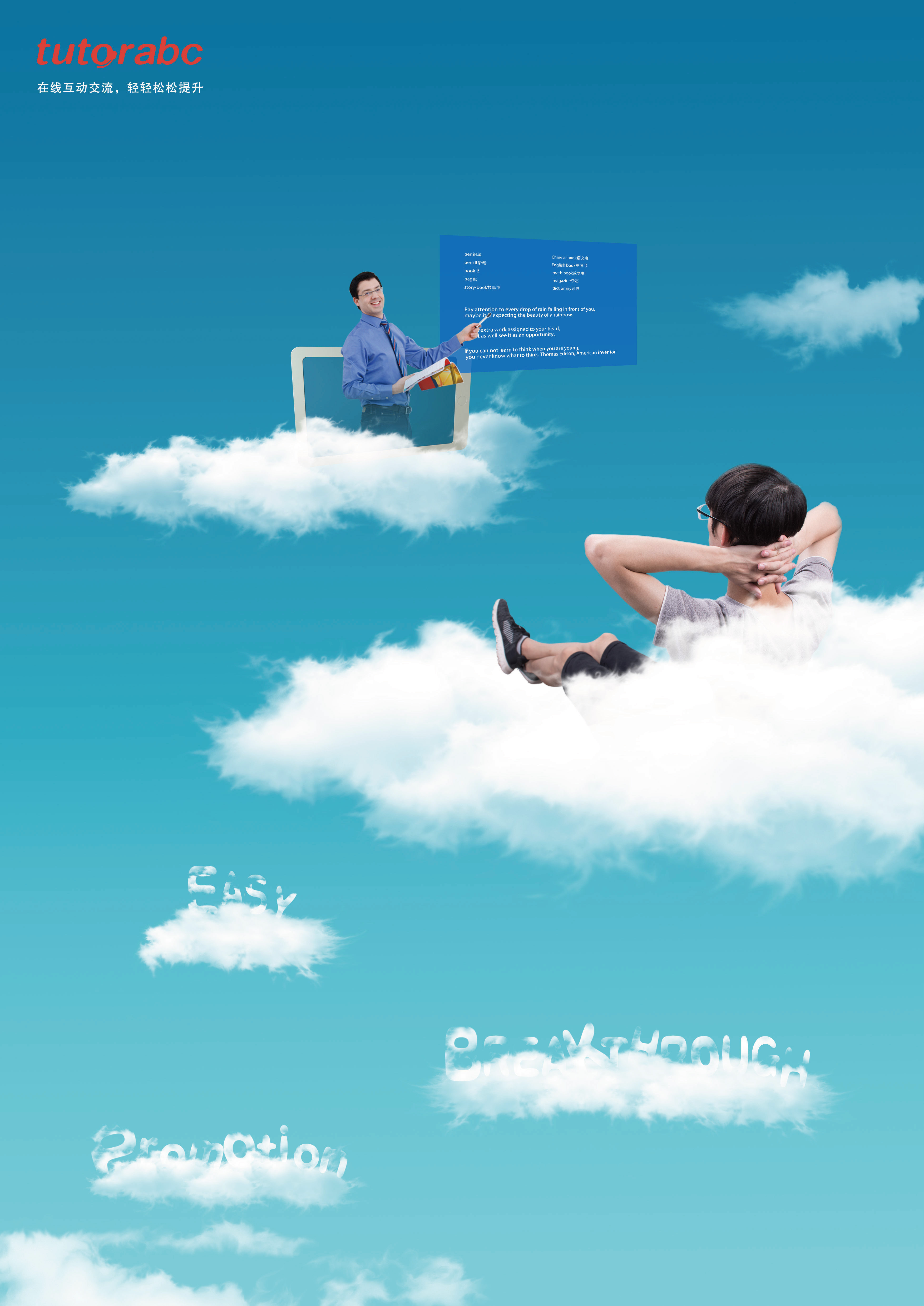 Tutor ABC,真人在线,互动交流,让学习不再是压力,仿佛在云上学习,惬意自在,轻轻松松提升!!