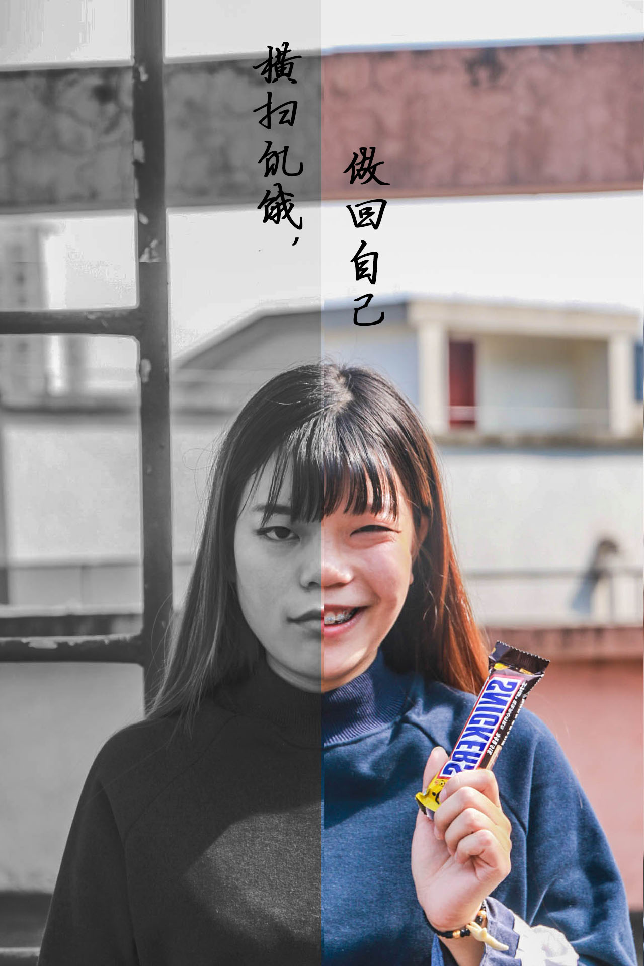 通过图片的彩色与灰色对比,来突出士力架的主题。