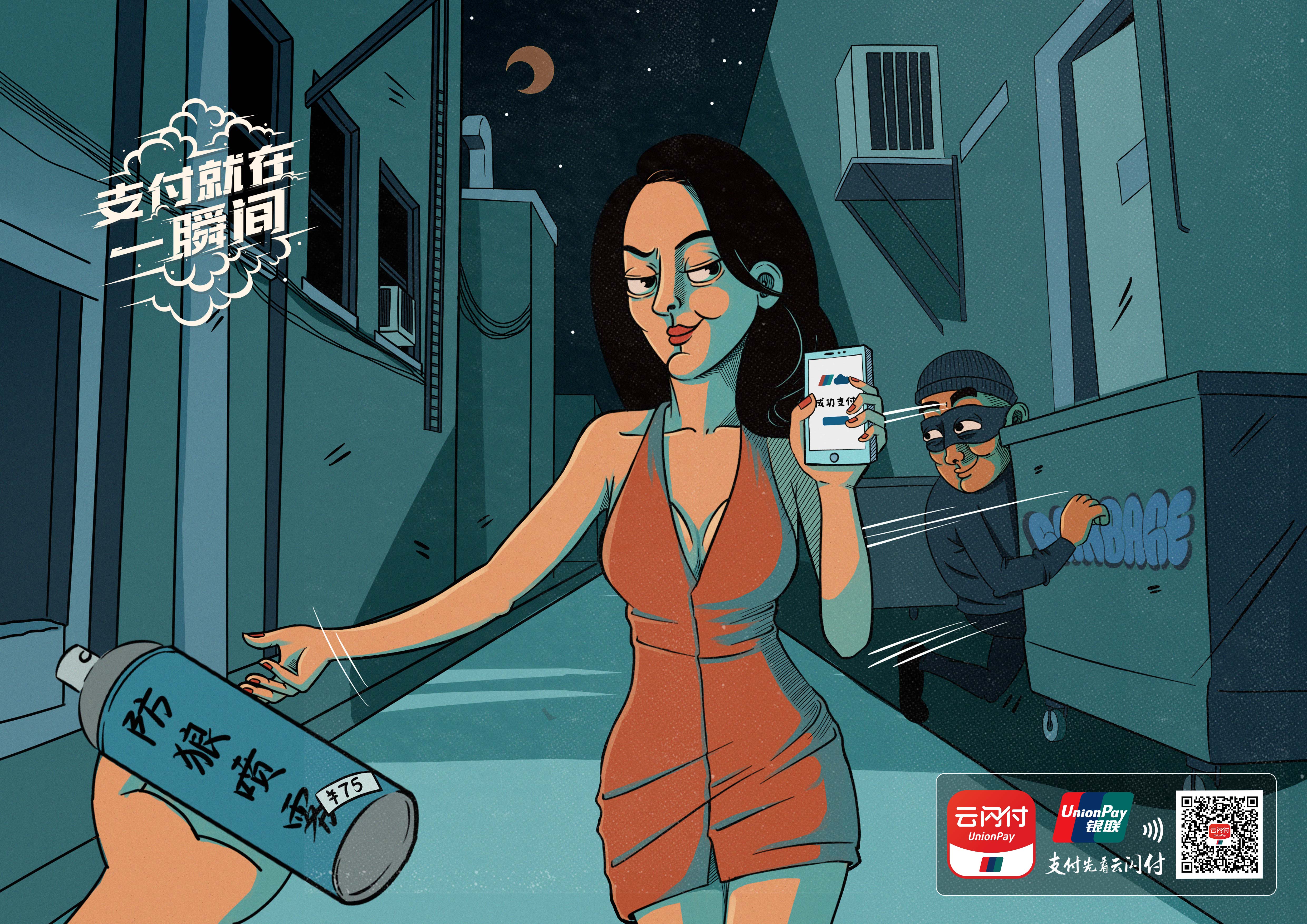 支付就在一瞬间 1033 3223 0 广告;平面;插画 分享 当你从摩托车摔下来,这时你需要快速购买一个头盔保护自己。 当你从悬崖掉向湍急的河流,这时你需要快速购买一个游泳圈 当你深夜回家遇到色狼,这时你需要快速购买一拼防狼喷雾驱赶匪徒。 赞一下 黑天十三幺 ‹ › 发布
